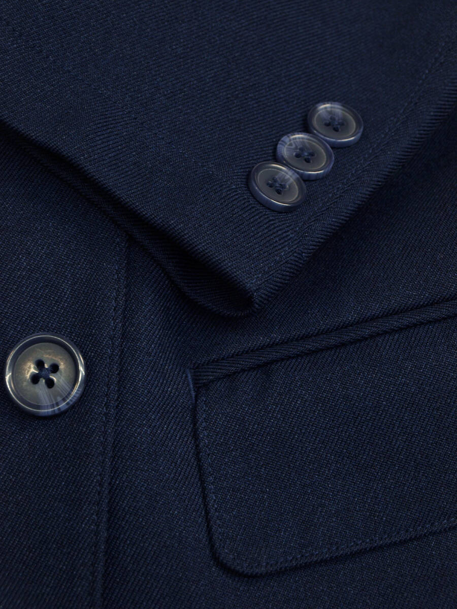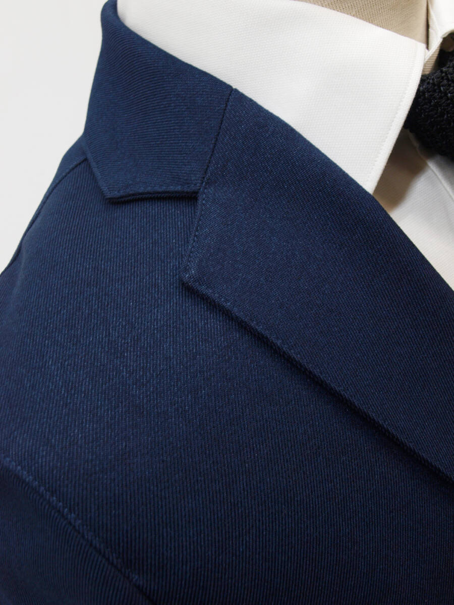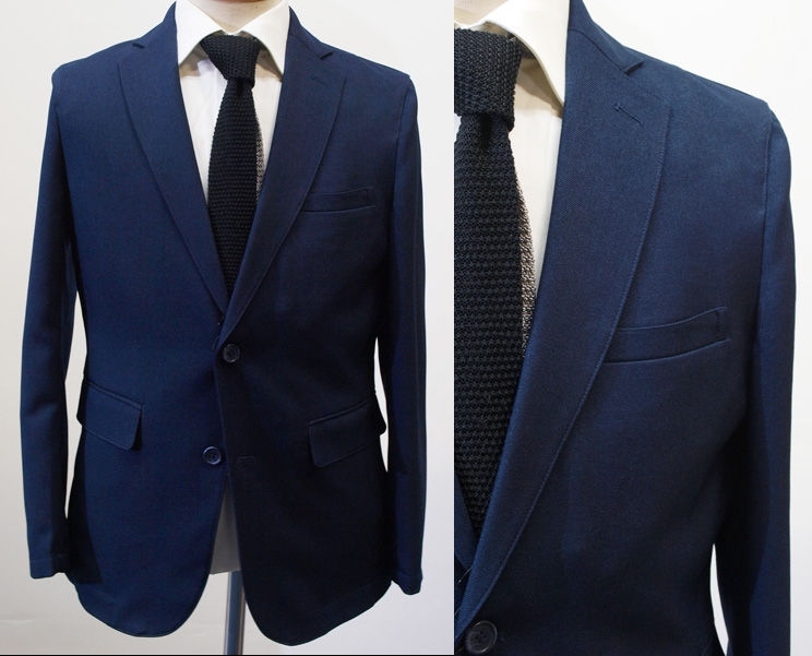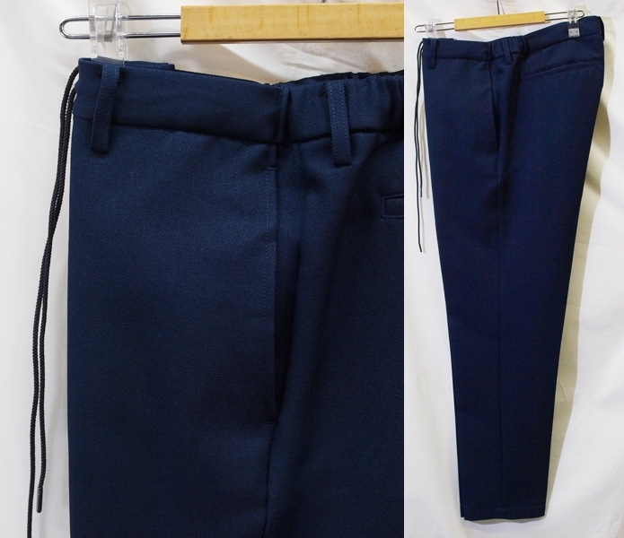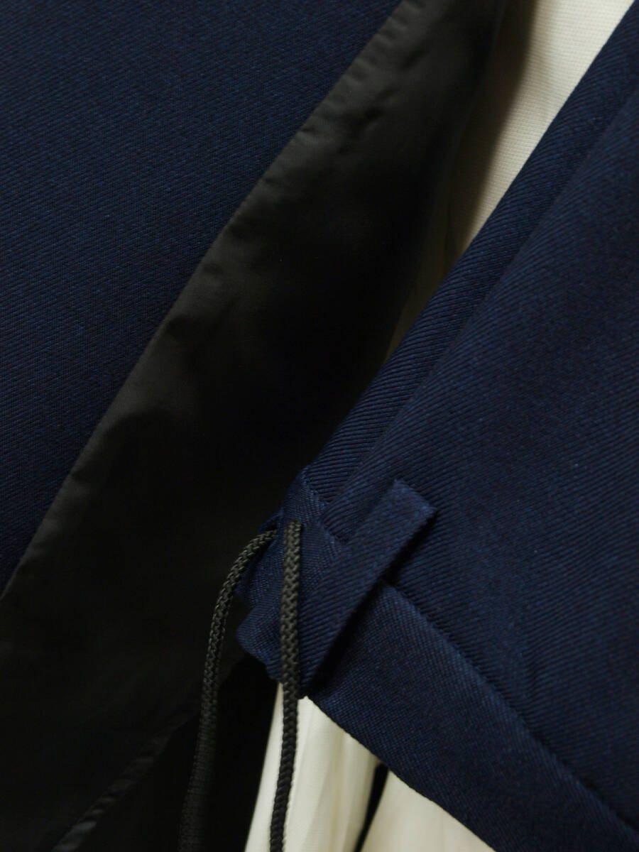 【サイズ】 LL (A7号サイズ相当) 目安の体型 身長175cm~185cm、ウエストサイズ86cm前後 【ジャケット実寸】 肩幅46cm 着丈73cm 袖丈63.5cm 脇下部分53cm 身幅48cm 【パンツ実寸】 最小86cm~最大96cm (ウエスト両脇にゴムシャーリング) わたり幅34.5cm(股下10cmの部位で31cm) 裾幅18.7cm 脇股上27cm 前股上29.5cm 股下74.5cm(三つ折り始末で裾上げ済の状態/新品) 【素材】 表地:ポリエステル100% 裏地:ポリエステル100% 裏地:前身裏/有り 背裏/なし 袖裏/なし 透け感がなくやや厚みがある綾織ポリエステル生地を使用。 【色】 紺色 【柄】 無地 【デザイン】 コンパクトな印象のすっきりとしたシルエット、スリムタイプ新品、裾上げしていない状態です。 ・ジャケットはシングル2つボタンでスリムモデル ・パンツは短め丈(74.5cm)で楽々ウエスト、すっきりシルエットノータックパンツ 秋冬春商品です。 【縫製仕様】 ・ジャケット:シングル2つボタン、肩パットなし、ノッチドラペル、袖口ボタン3つ、筒袖、センターベント、内ポケット1つ、背裏なし(秋冬春向け) ・パンツ:ノータック、ウエスト両脇部分ゴムシャーリング、外側にドローストリング(紐付き)、ベルトループ付き、膝裏当てなし、脇ポケット斜め付け、後ろポケット片玉縁で左右ともにボタンなし、フロントはファスナーでボタン仕様