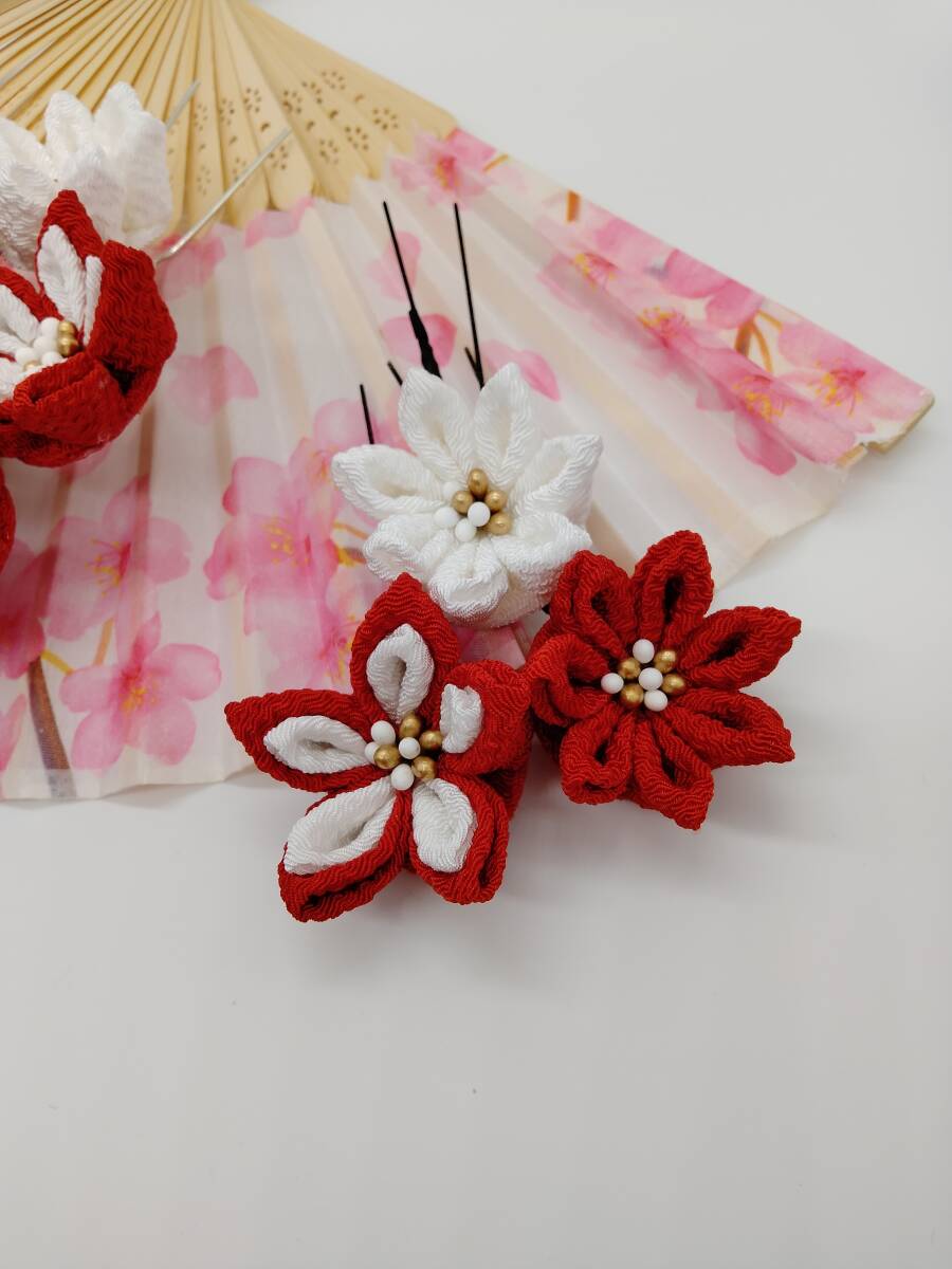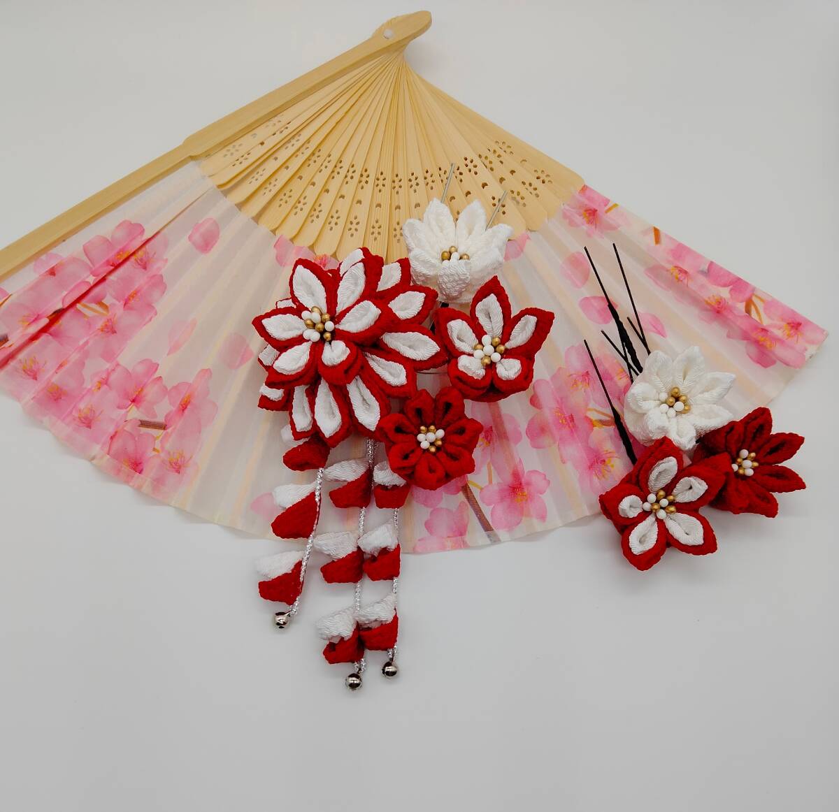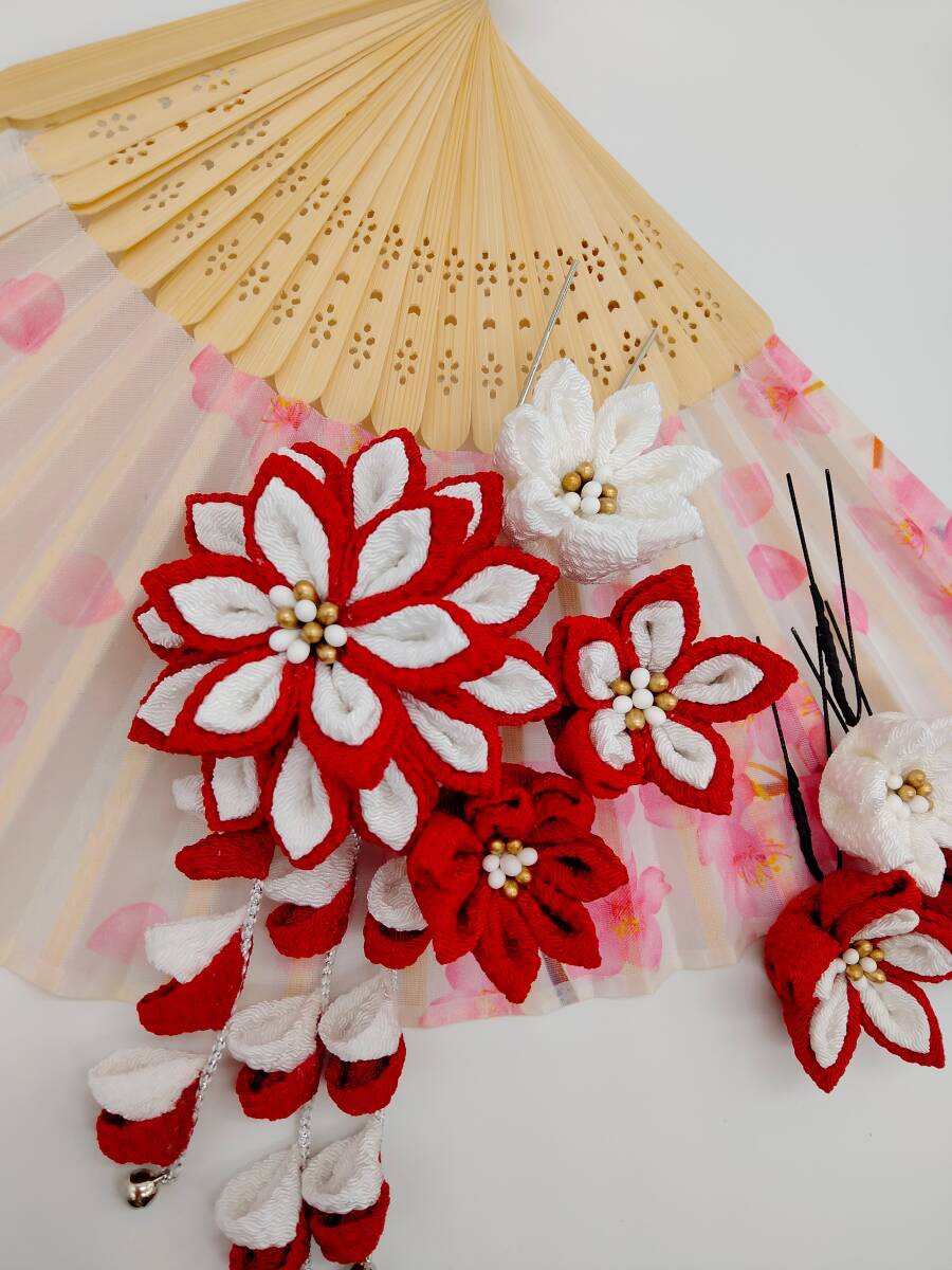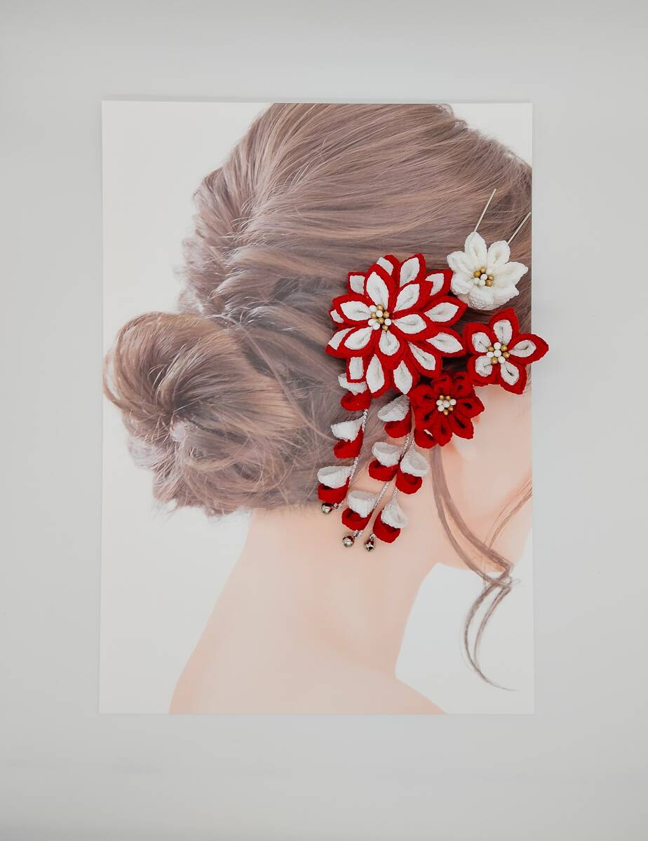 送料無料!つまみ細工髪飾り 松葉菊 紅白房さがり ブライダル 花嫁 ウェディング 白無垢 成人式 お祝い