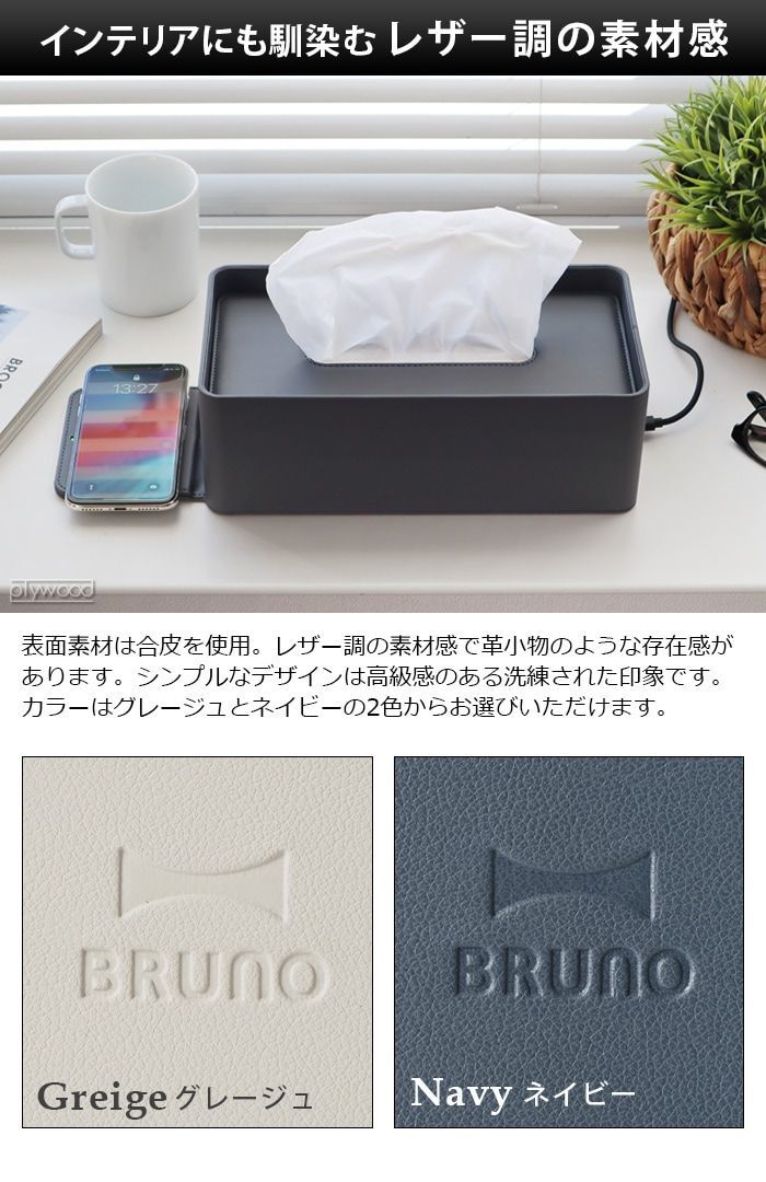 送料無料★新品未開封品◎価格¥6,050 BRUNO ブルーノ ワイヤレスチャージャー ティッシュボックス ネイビー