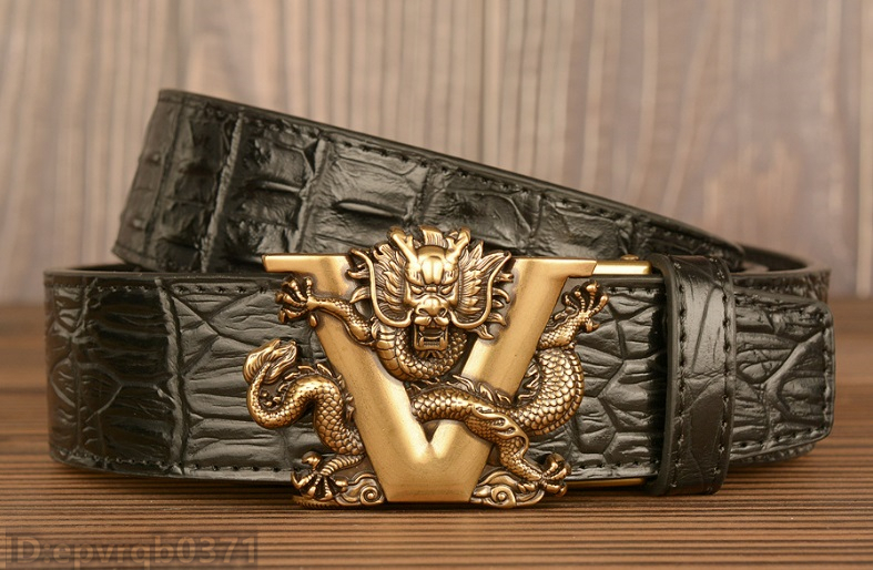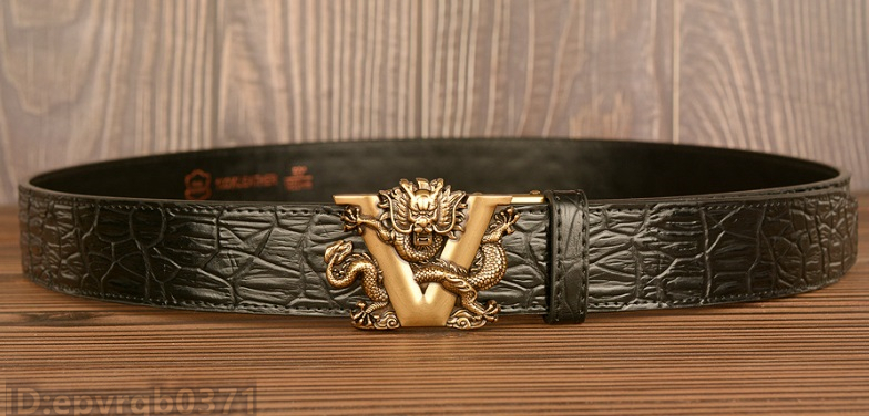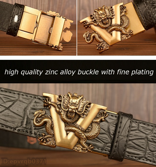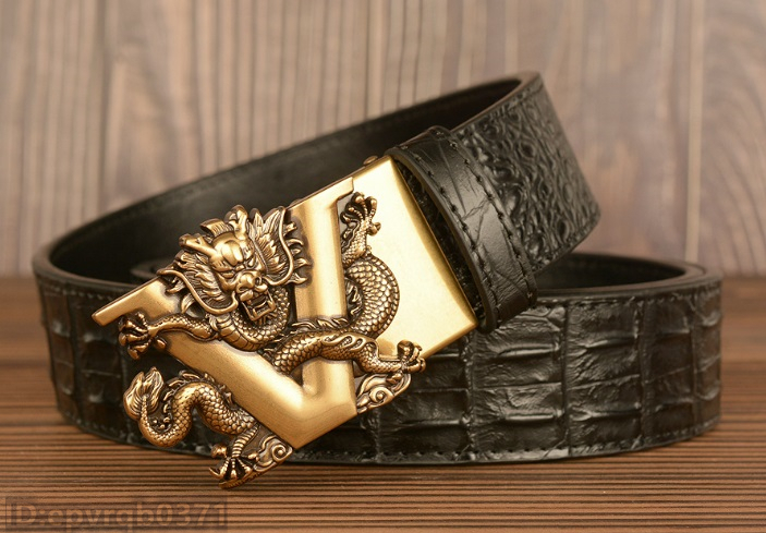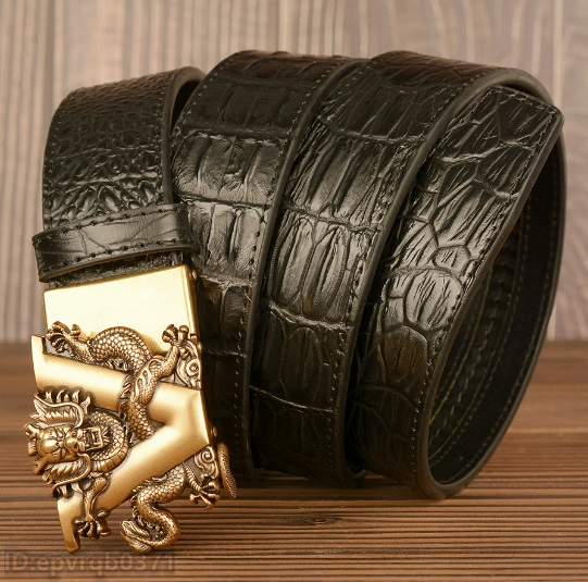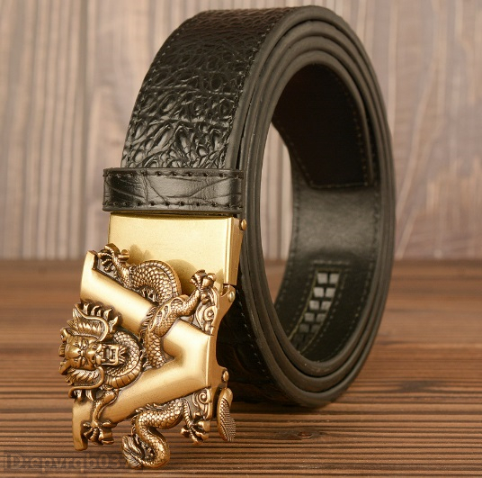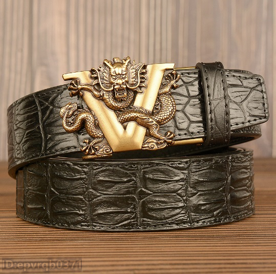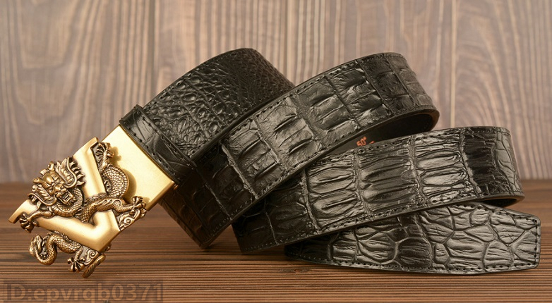 レザーベルト 新品 メンズベルト 本革 オートロック式 ドラゴン 金属バックル ワニ柄 幅3.5センチ 紳士 長さ調整可能 /黒
