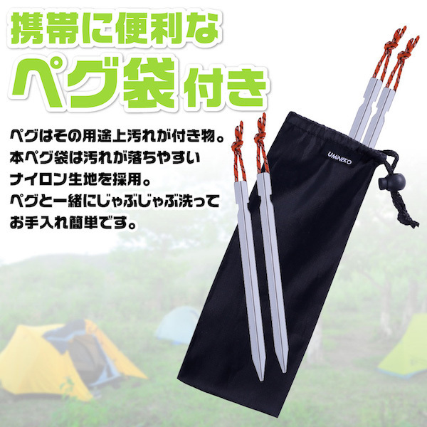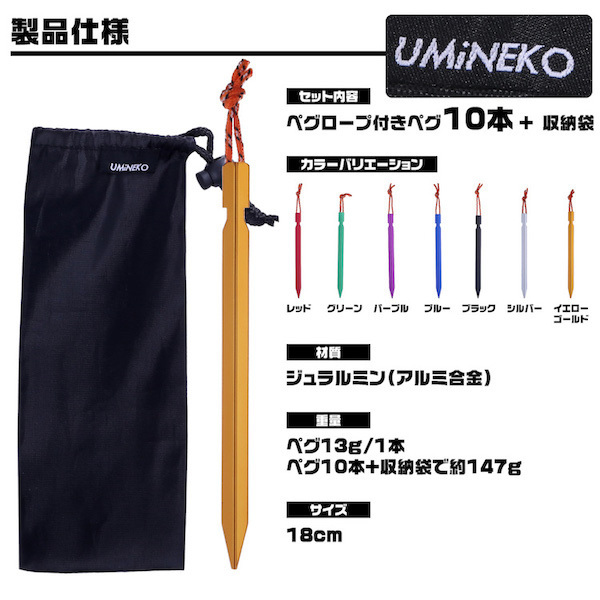 重量:ペグ13g/1本 ペグ10本+収納袋で約147g