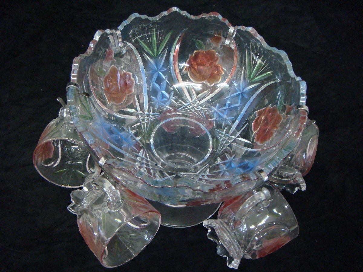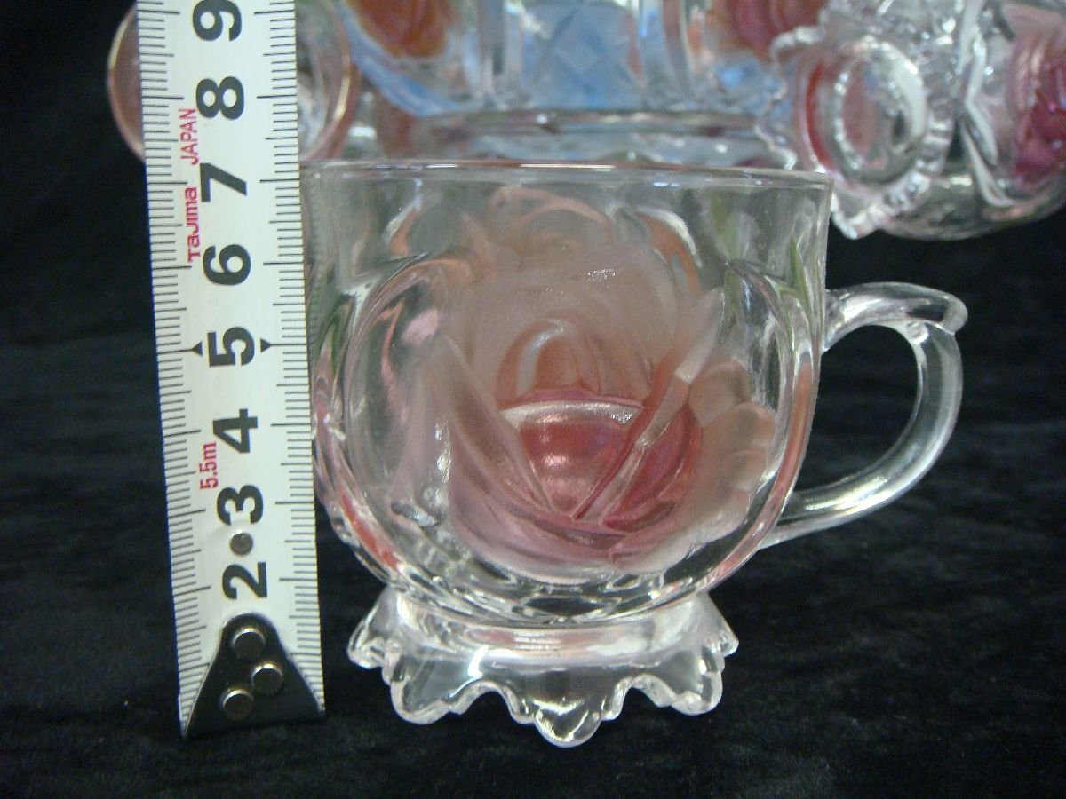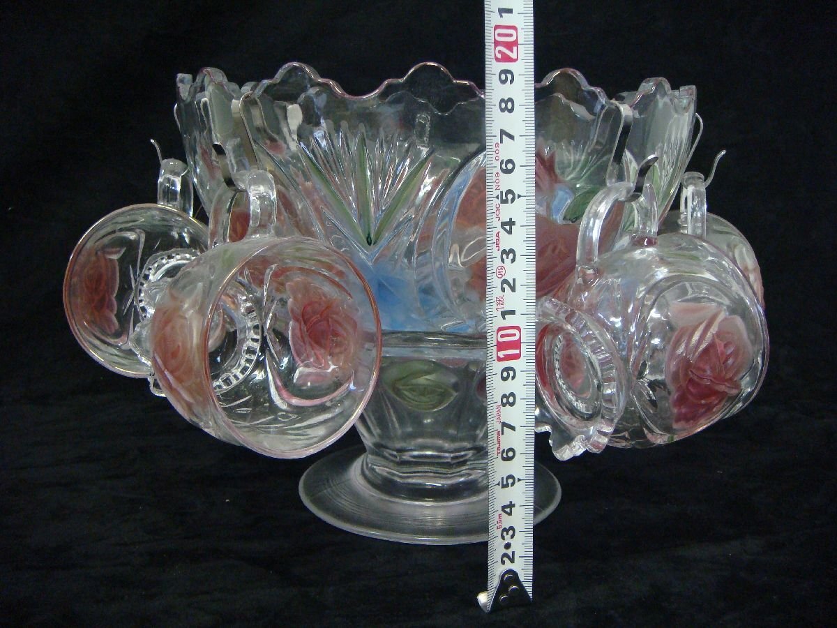 MB/E20AI-DA3 ガラス食器 フルーツポンチ ボウル カップ×6点 バラ柄 ハンガー