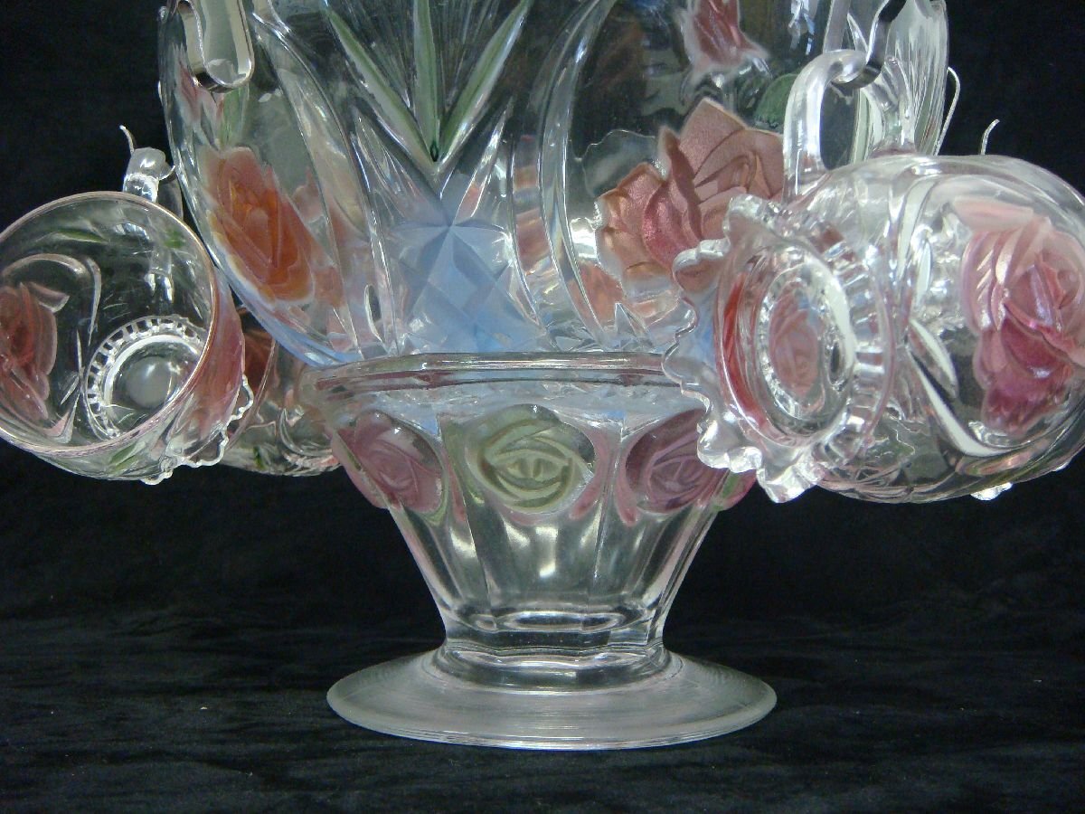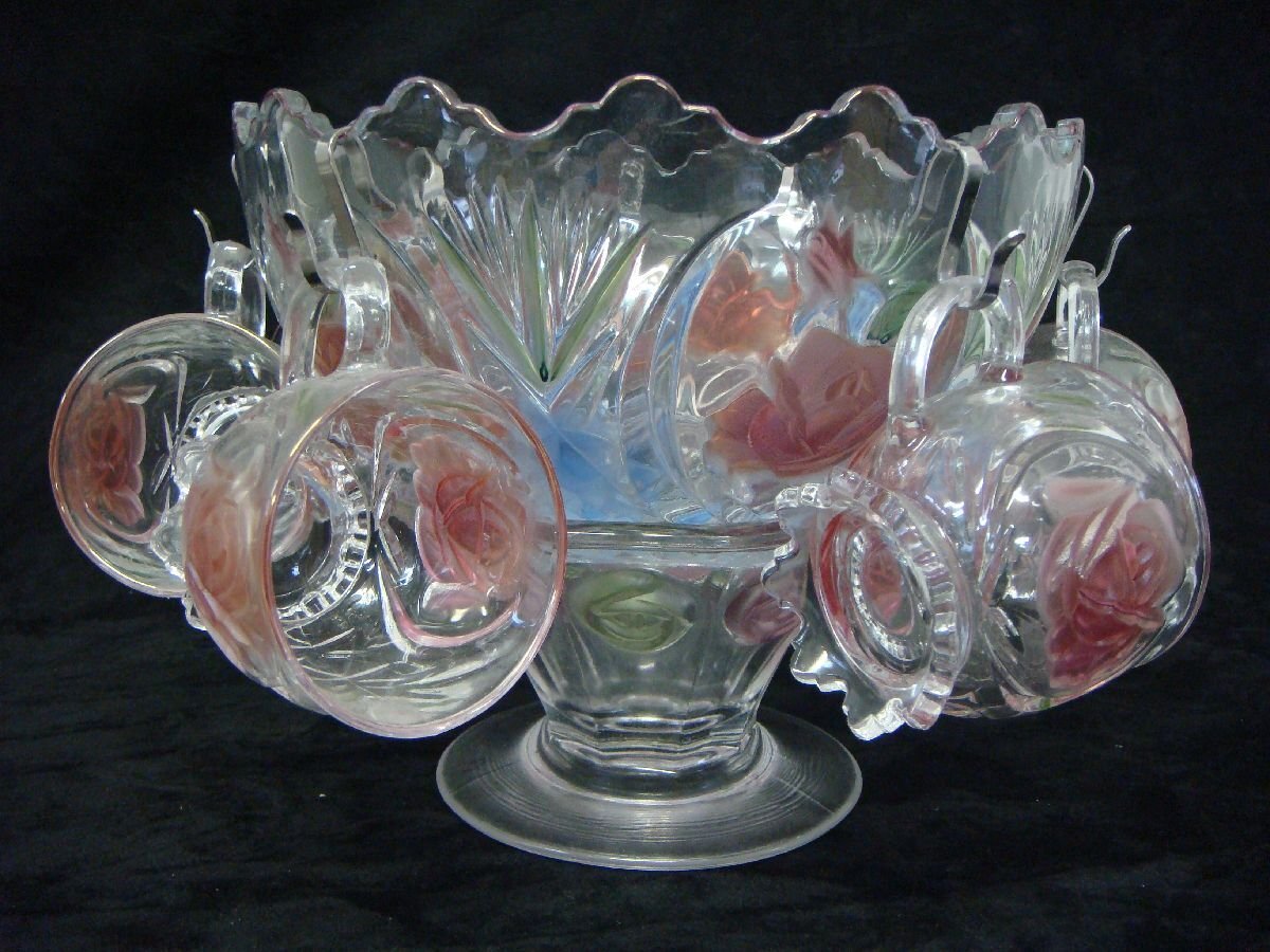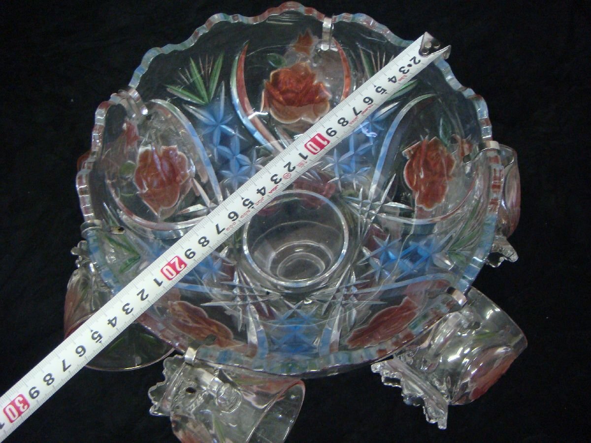 MB/E20AI-DA3 ガラス食器 フルーツポンチ ボウル カップ×6点 バラ柄 ハンガー