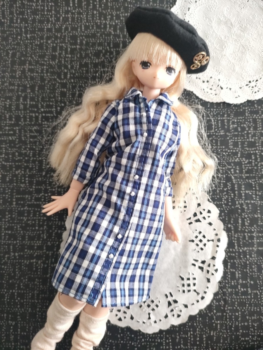 4r528 ドール用 チェック ワンピース ピュアニーモ リカちゃん ブライス 1/6ドール