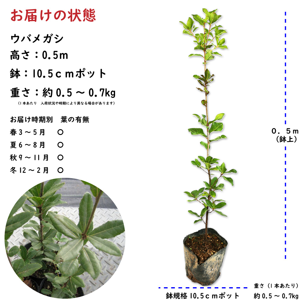 ウバメガシ 0.5m 10.5cmポット 30本 苗