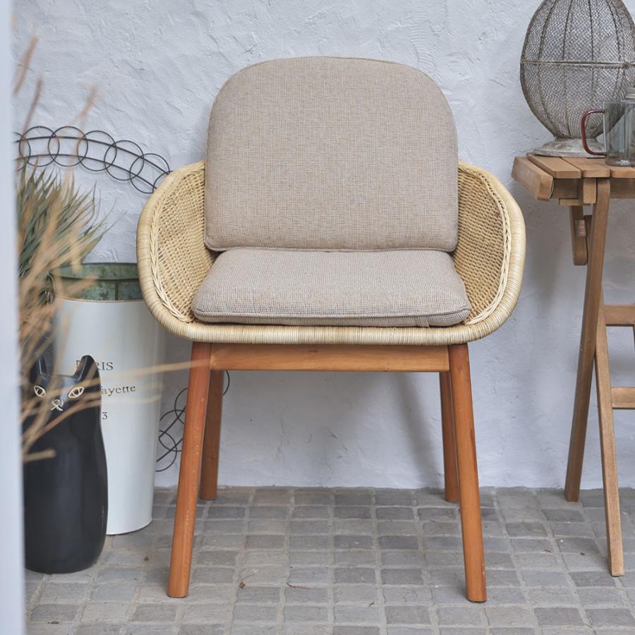 ●天然素材のラタン(籐)と天然木ミンディを使用した、風合い豊かなチェア。