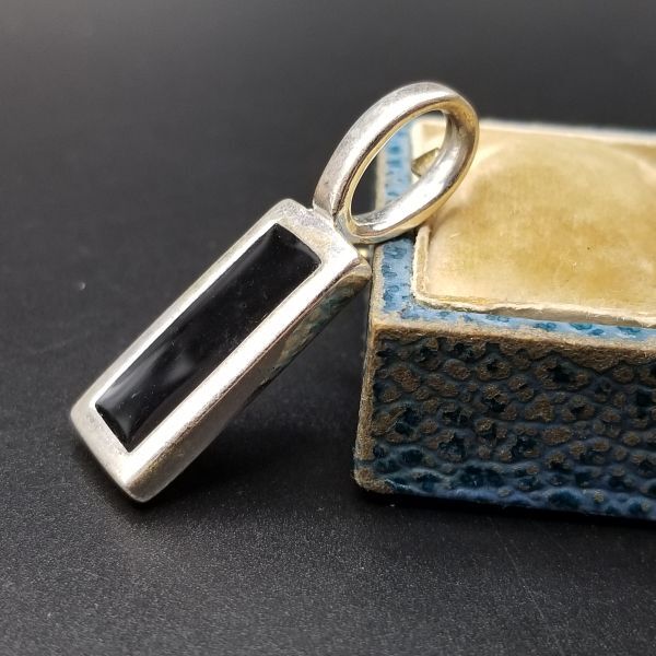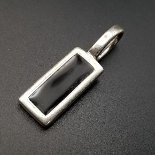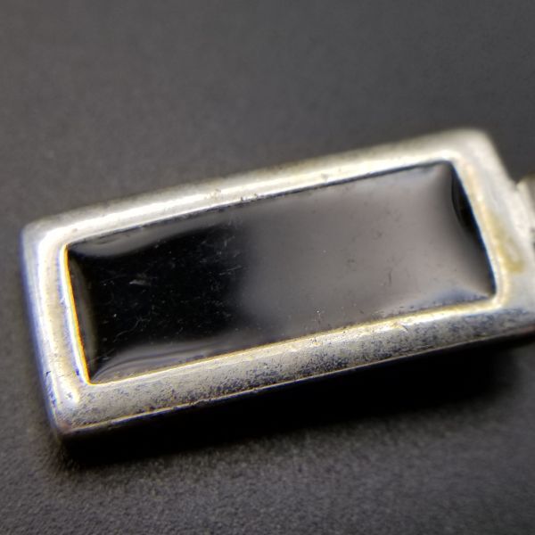 黒エナメル シンプル レクタングル ヴィンテージ ペンダントヘッド チャーム ネックレス ユニセックス スタイリッシュ AJE
