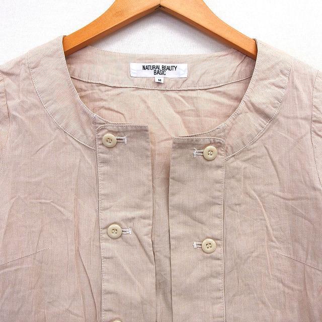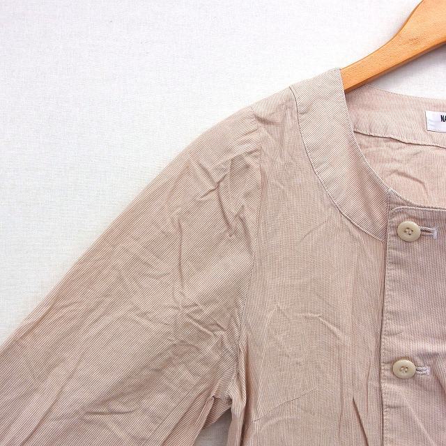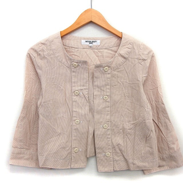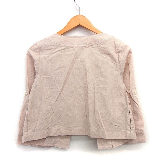 N.Natural Beauty Basic N.ナチュラルビューティーベーシック トッパー ジャケット ノーカラー ストライプ 七分袖 綿 M /HT24 レディース