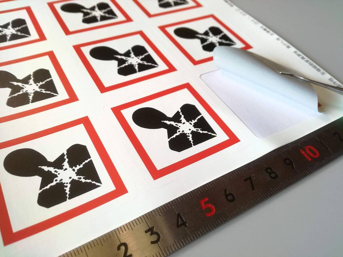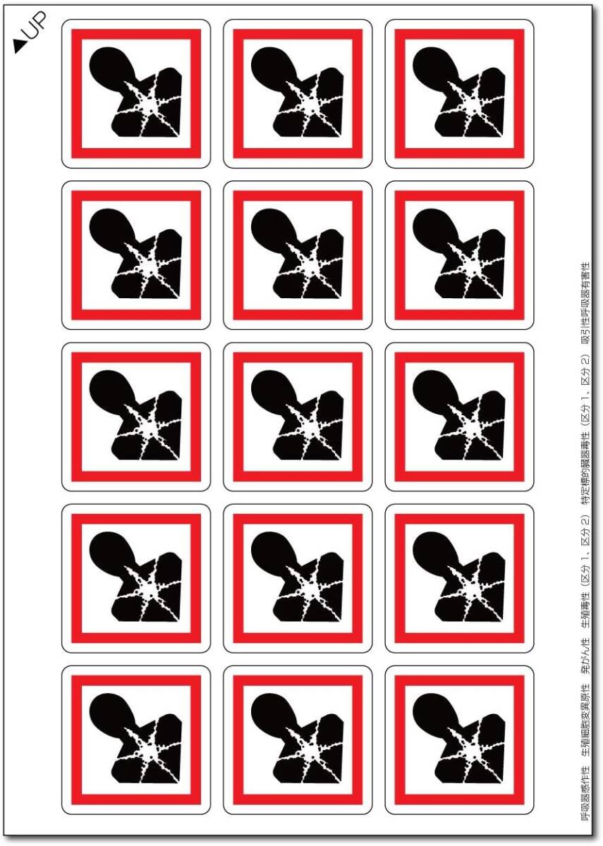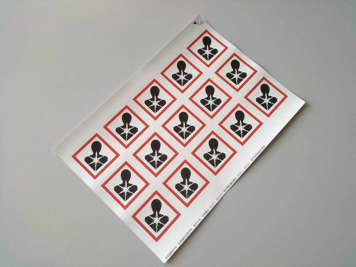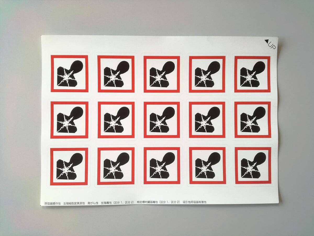 GHSラベルのステッカーです。1シートに15個レイアウトしています。