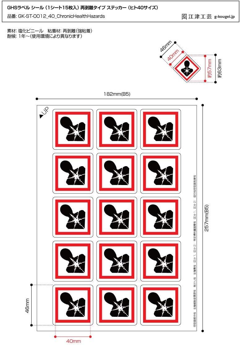 #GHSラベル #健康有害性 #20mm #ヒト #化学物質 #危険物 #安全 #注意 #ラベル #ステッカー #規格 #法令遵守 #事業者責任 #職場安全衛生 #リスクコミュニケーション #実験 #理科 #教育 #危険物取扱注意 #洗剤 #台所 #注意喚起