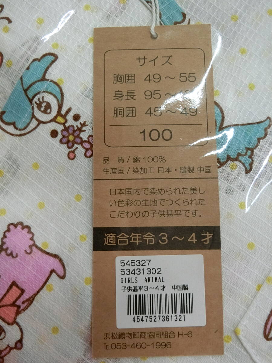 【未使用品】子供用 甚平 上下セット 白色 サイズ110 適応年齢3~4歳