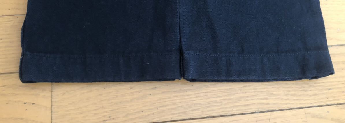 アクセスありがとうございます。レトロなアメリカンスポーツウェアや伝統的なワークウェアにインスパイアされた飾らない定番アイテムを提案する、セーブカーキユナイテッド(Save Khaki United)です。柔らかく快適なフーディから、ゆったりとしたコットンTシャツまで、着心地とフィット感にこだわったアイテムが充実しています。新たなベーシックアイテムが見つかるはずです。生地も厚手のヘリンボーンですごくしっかりしています。サイズ表記はMです。腰幅43cm,前股上27cm,後股上34cm,股下75cmです。試着したきり保管していました。元もと洗いがかかっているので味が出ています。前後にぽっつりと色が抜けているところが元々ありました。画像より判断ください。気になる方は早めに手に入れてください。質問等ありましたらよろしくお願いします