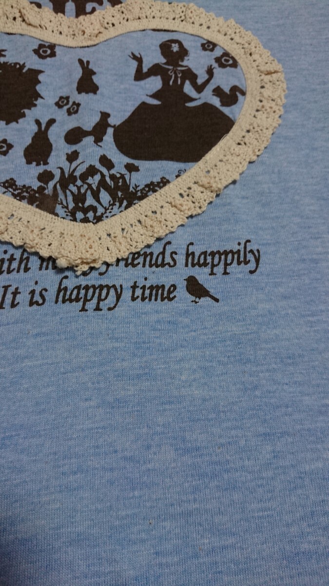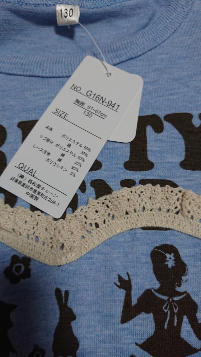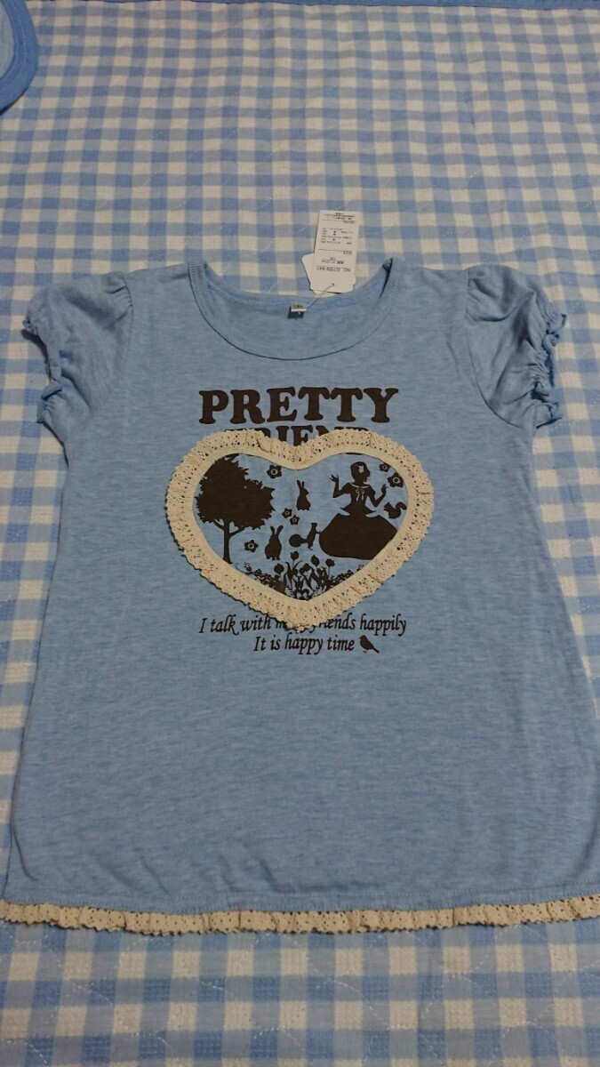 @♪176☆未使用・保管品☆パフスリーブのかわいいTシャツ 影絵レース 青140①