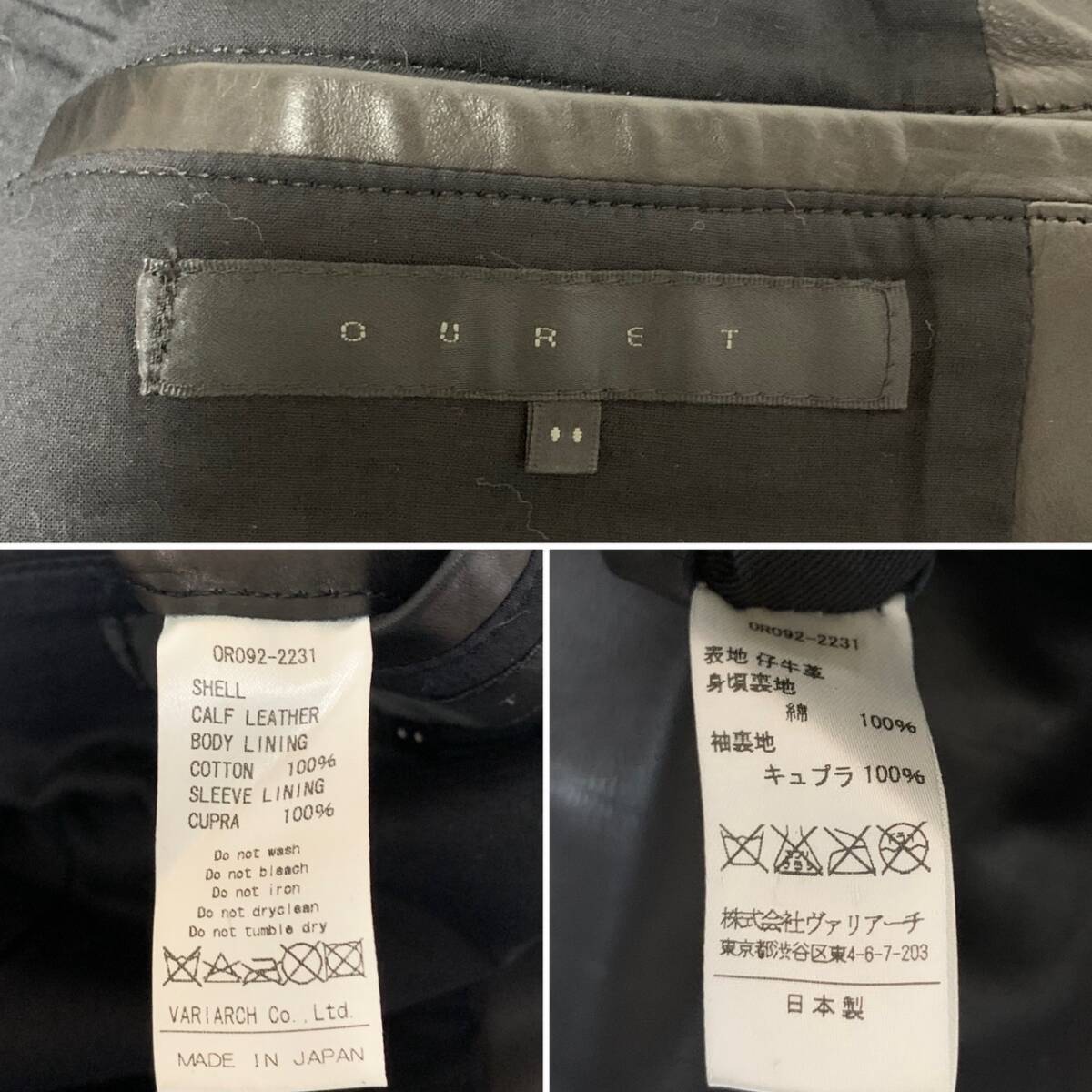 [OURET] ボトルネック ジップアップ カーフレザージャケット ライダース 2 仔牛革 OR092-2231 日本製 オーレット