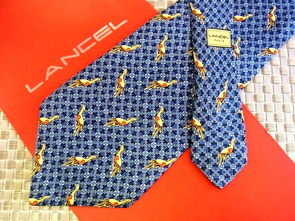 ♪34288D♪状態並品【鳥 格子 柄】ランセル【LANCEL】ネクタイ