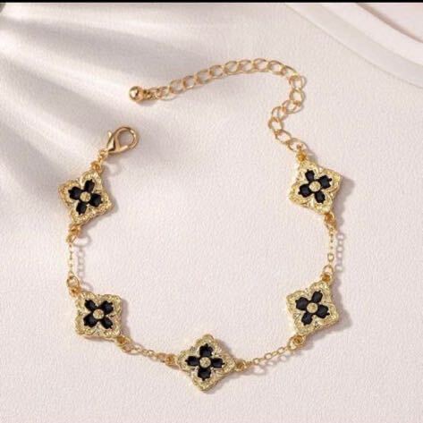 レディース アクセサリー ジュエリー ブレスレット バングル アクセ 原宿 病み 病み可愛い ゴスロリ 地雷 地雷系 フラワー お花 花 ゴールド ブラック 黒