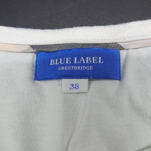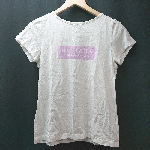 ◇ BLUE LABEL CRESTBRIDGE ロゴプリント コットン100% クルーネック 半袖 Tシャツ サイズ38 ホワイト レディース E