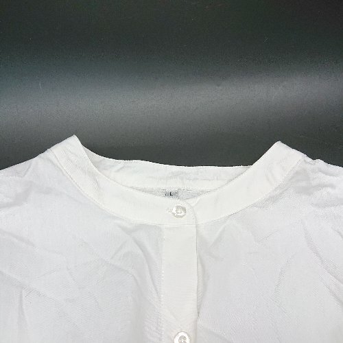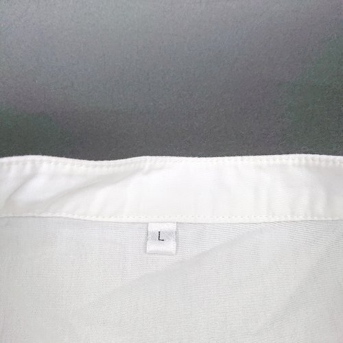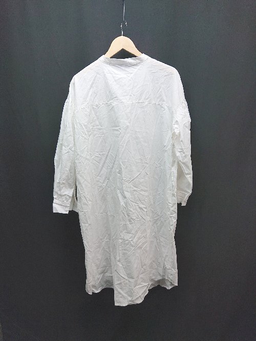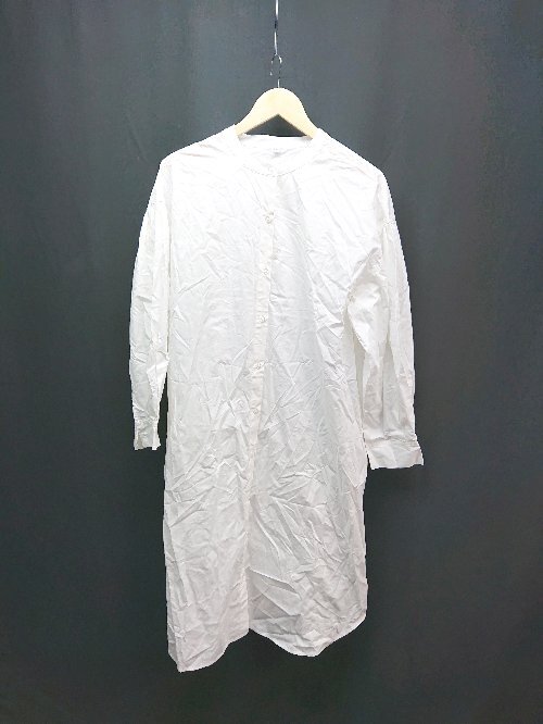 ◇ ノーブランド バンドカラー フロントボタン 前開き シャツ 長袖 ロング丈 ワンピース サイズL ホワイト レディース E