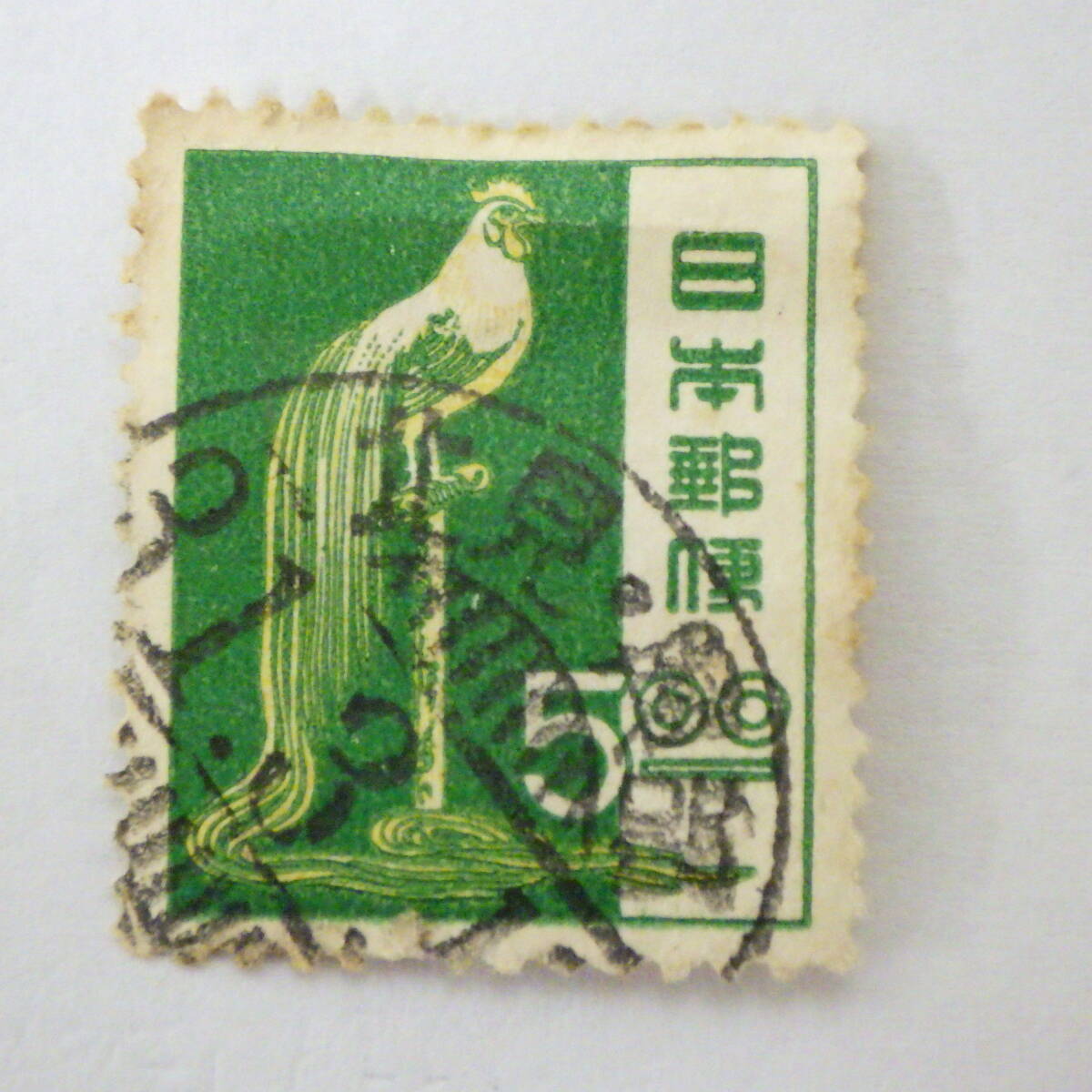 日本 切手 第1次動植物 尾長鶏 消印有 使用済み 北見 興部