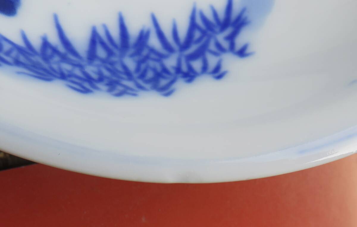 縁に、へこんだような窯傷があります(釉薬はかかっています。画像6)。