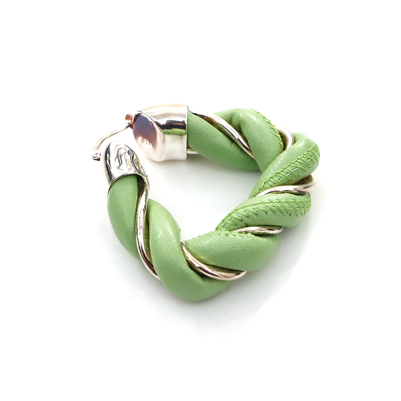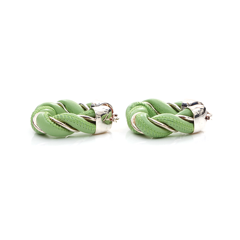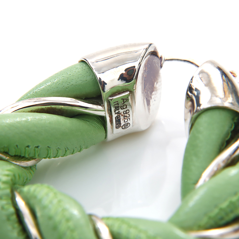 極美品 BOTTEGAVENETA レザー 925 シルバー 三角 イヤリング グリーン×シルバー