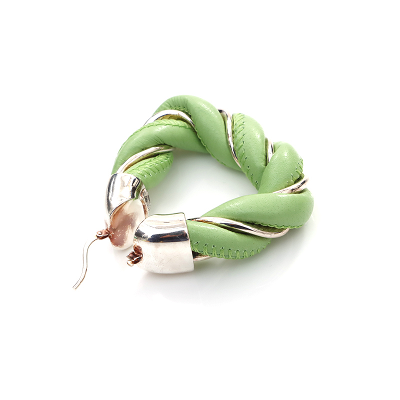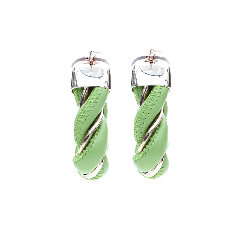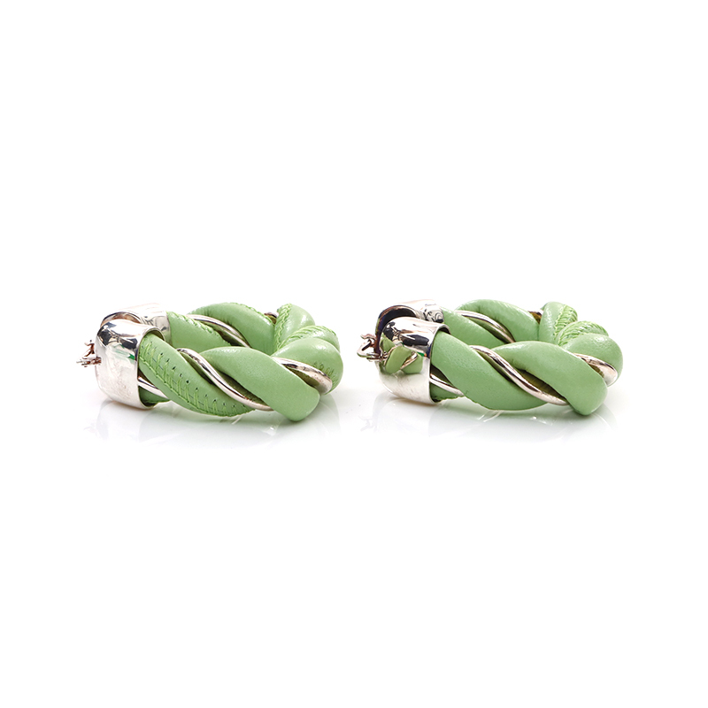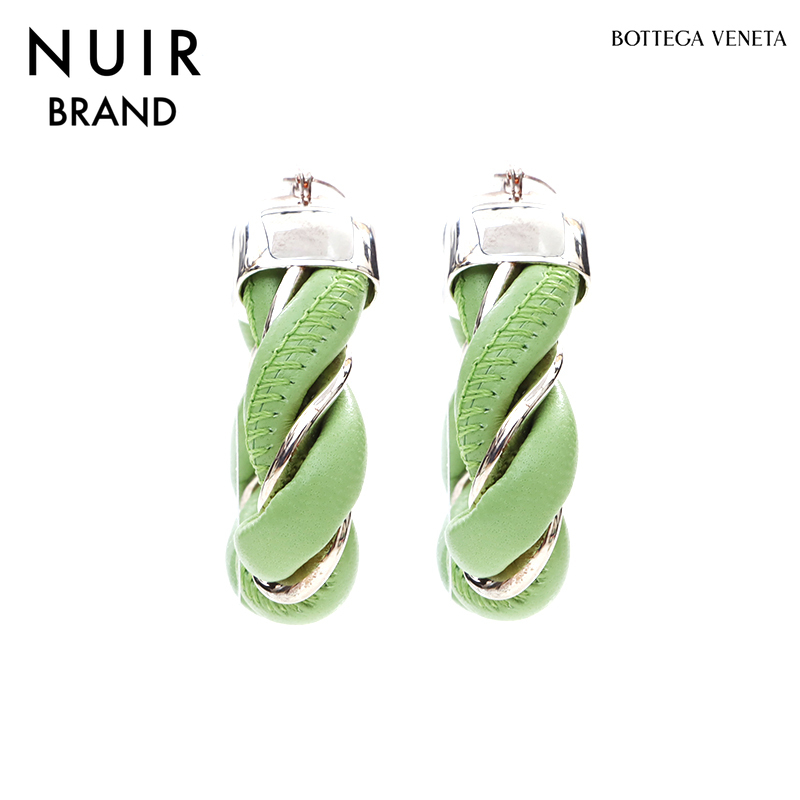 ボッテガヴェネタ BOTTEGAVENETA イヤリング レザー 925 シルバー 三角 グリーン×シルバー