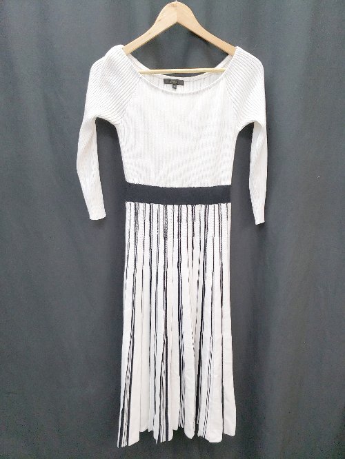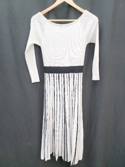 ◇ rienda リエンダ バイカラー 大人女子 キレイめ 七分袖 膝下丈 ワンピース サイズFREE ホワイト ブラック レディース P