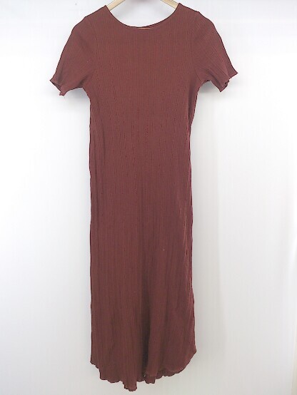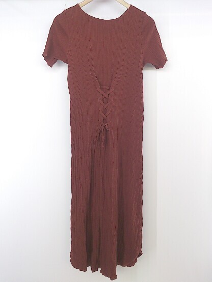 ◇ NATURAL BEAUTY BASIC バックレースアップ 半袖 膝下丈 ワンピース サイズM ブラウン レディース P