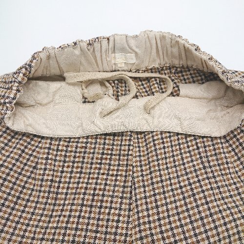 ◇ 美品 earth music & ecology チェック柄 ウエアスト紐有 テーパード タックパンツ サイズL ブラウン レディース E