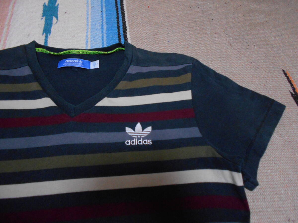 ADIDAS 正規 2010年製、アーバンダークトーン マルチボーダー柄 Tシャツ