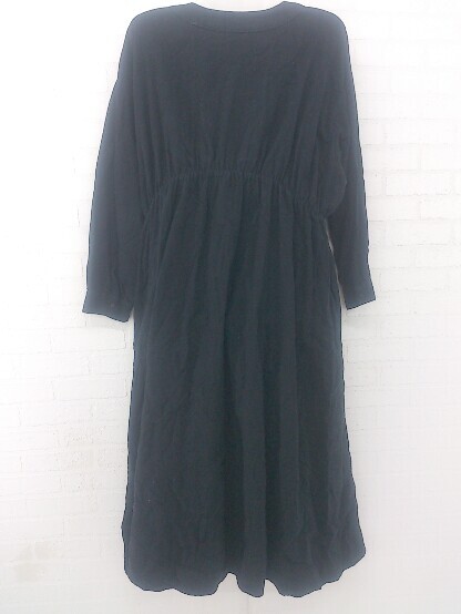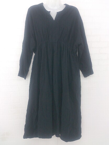 ◇ studio CLIP スタディオクリップ Vネック ギャザー 長袖 ロング ワンピース サイズM ブラック レディース E