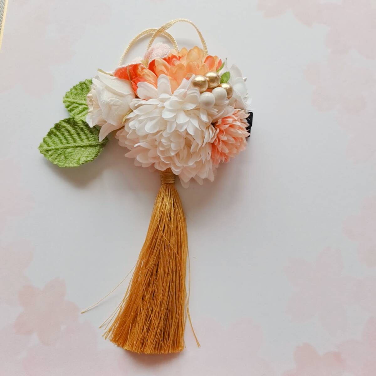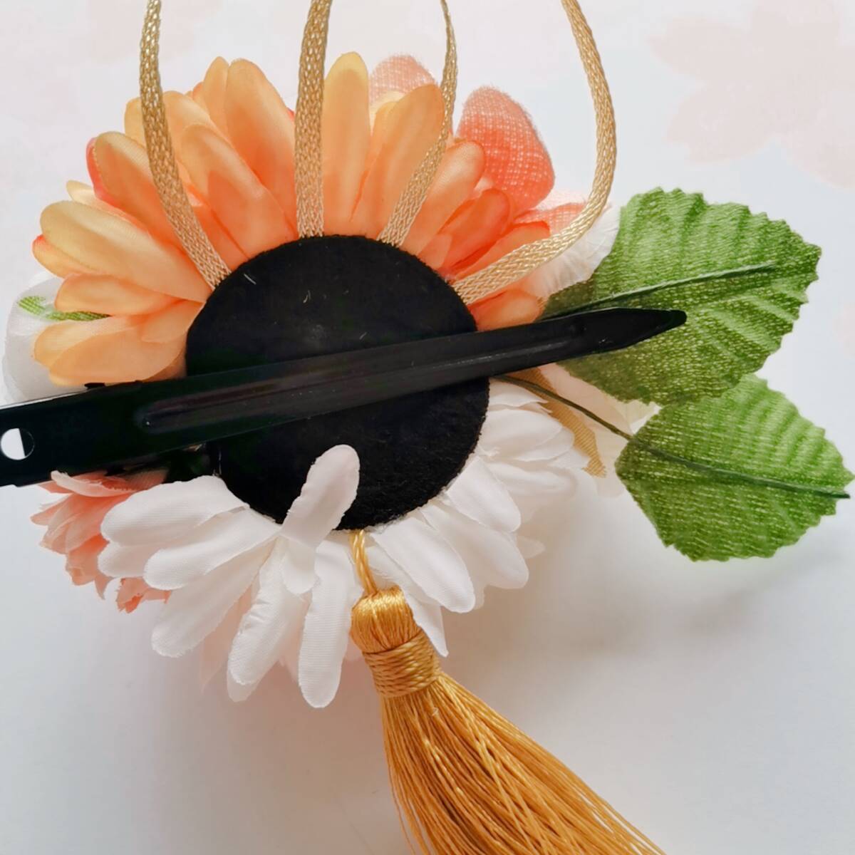 和装 髪飾り 造花 クリップ式 振袖 成人式 結婚式 入学式 卒業式 七五三 浴衣 着物 黄色 オリジナル 和装小物 夏祭り花見
