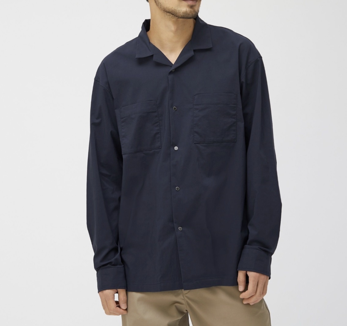 多機能な素材を、日常着に使いやすいデザインに落とし込んだ長袖シャツ。ナイロン100%ながらコットンライクなセボナーは、はっ水性、軽量性、ストレッチ性、ドライ性などを備えた素材。シワになりにくく、イージーケアなのも魅力です。静電気の発生を抑える静電ケア設計を採用しています。シルエットはボックスフィットの開襟タイプで、両胸のポケットがデザインのアクセントに。フロントはドットボタン仕様で、着脱が容易でさっと羽織るスタイルにも活躍します。