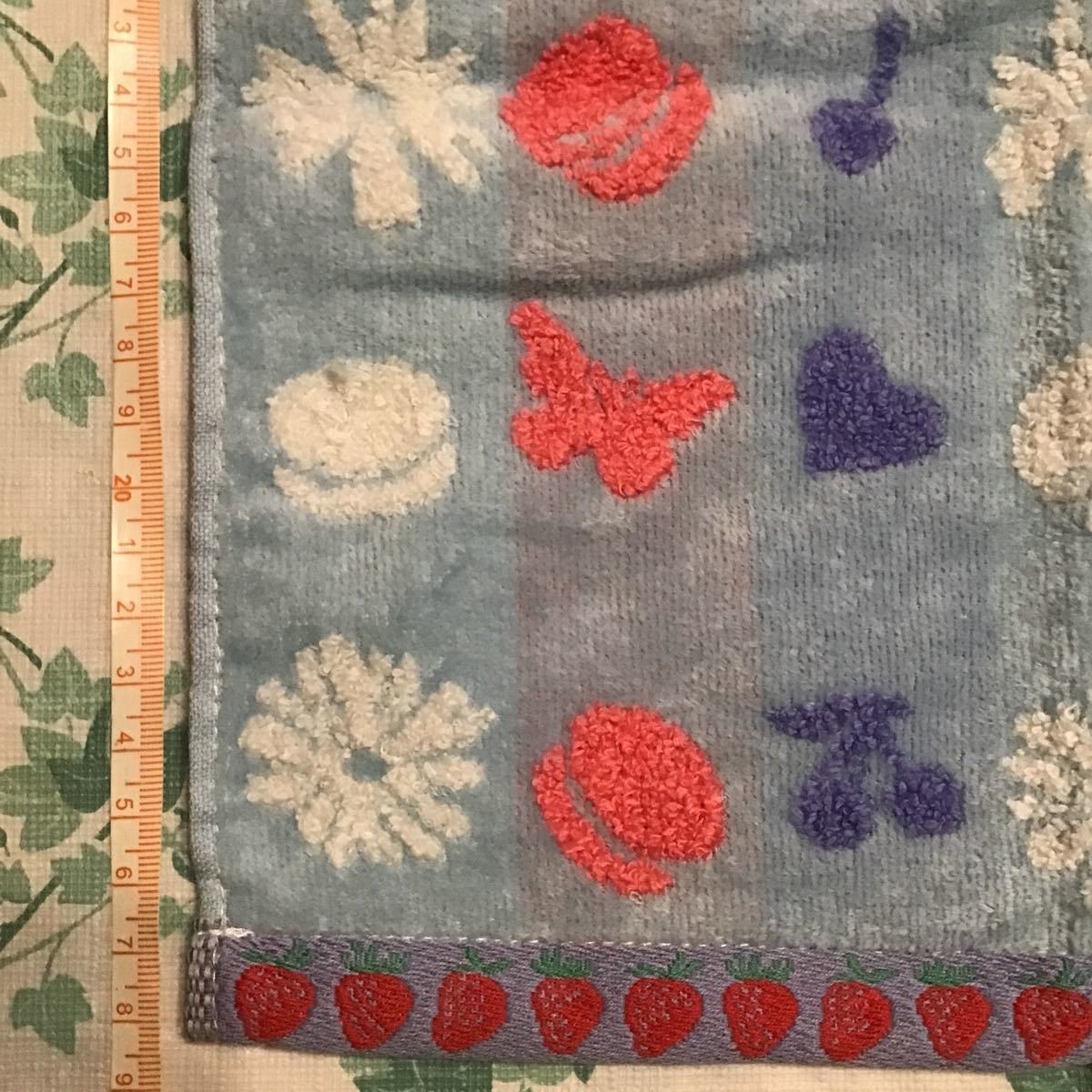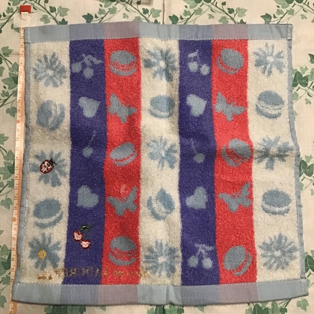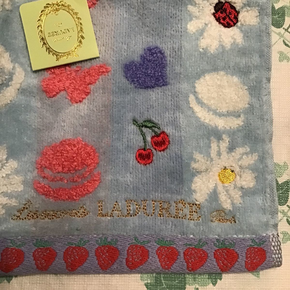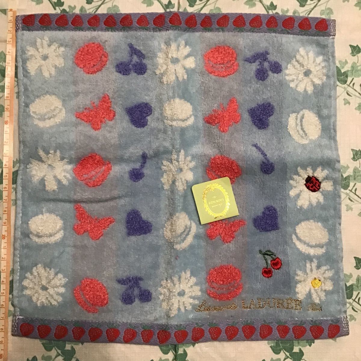 ☆LADUREE ラデュレ タオルハンカチ 大き目 縁いちご 新品 1点のみ! サックス マカロン てんとう虫 チェリー