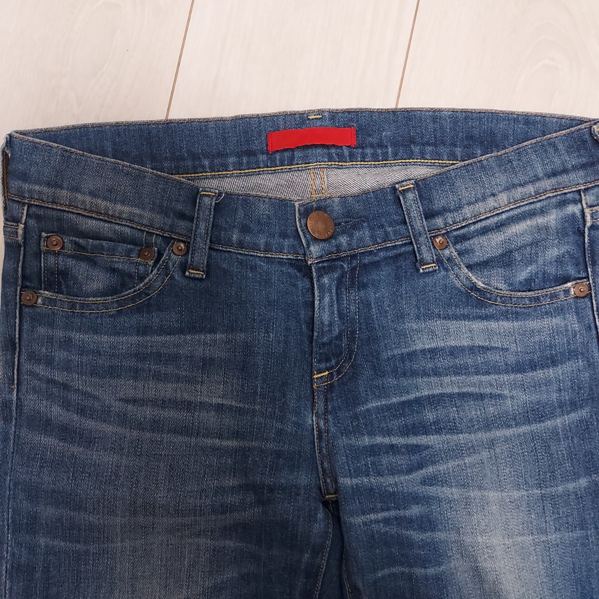 ウエスト78 股上19.5 股下80 裾幅14cm
