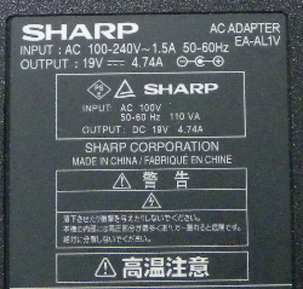SHARP EA-AL1V 19V4.74A ■yh3392