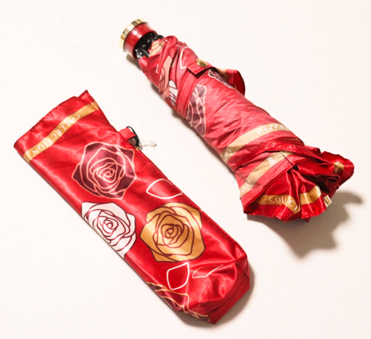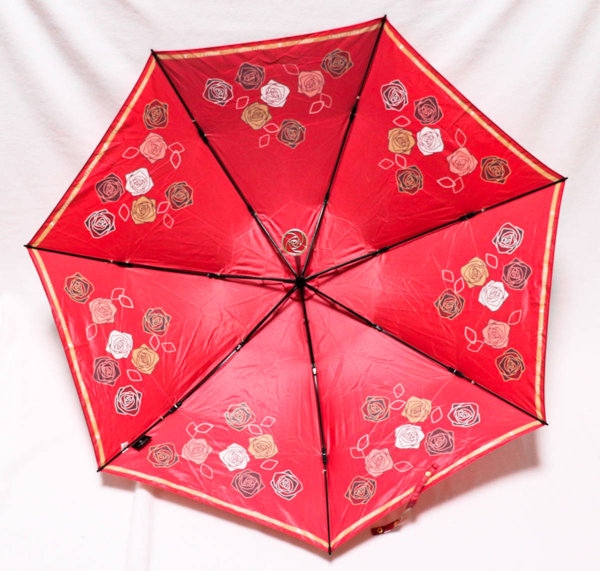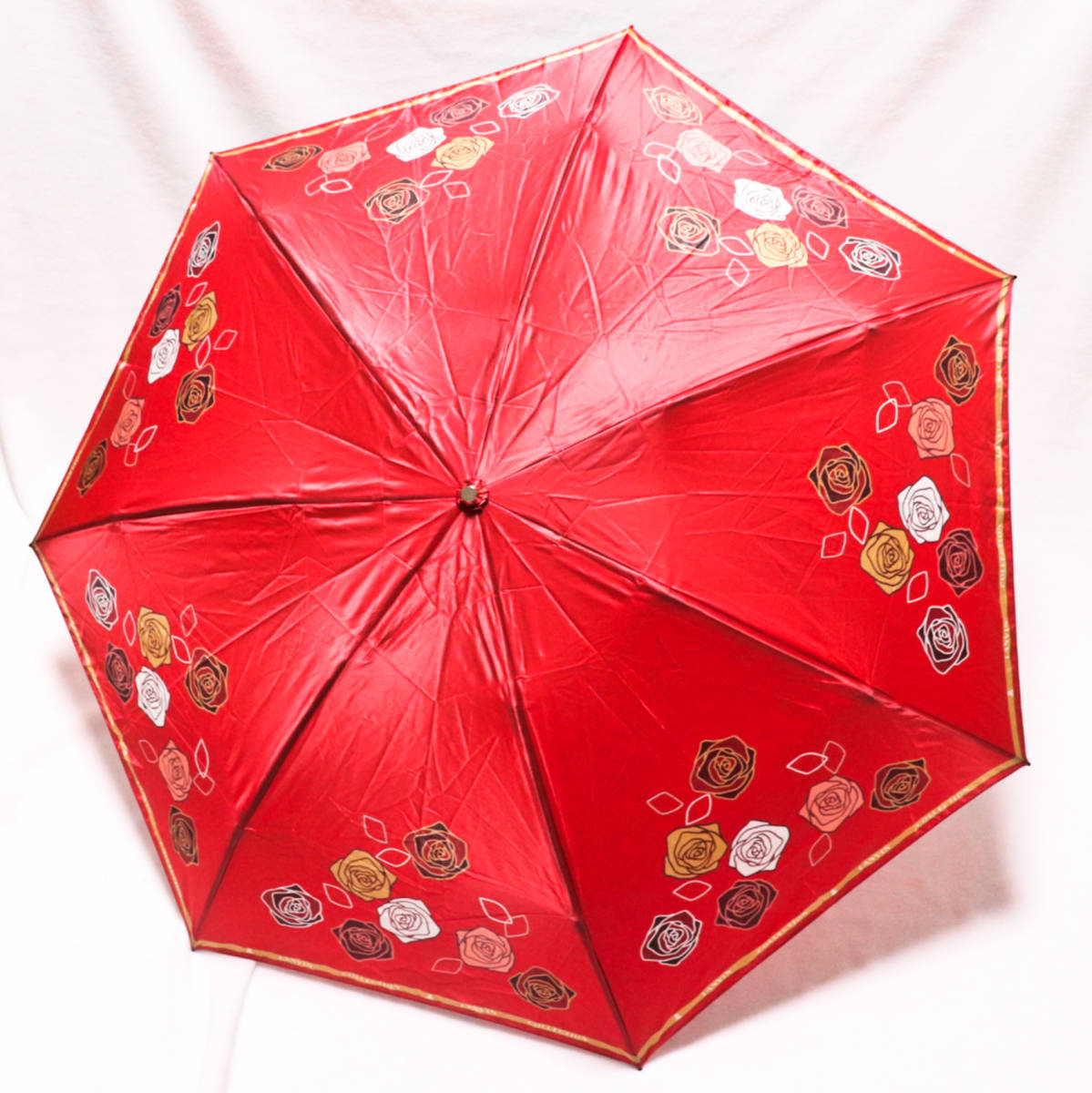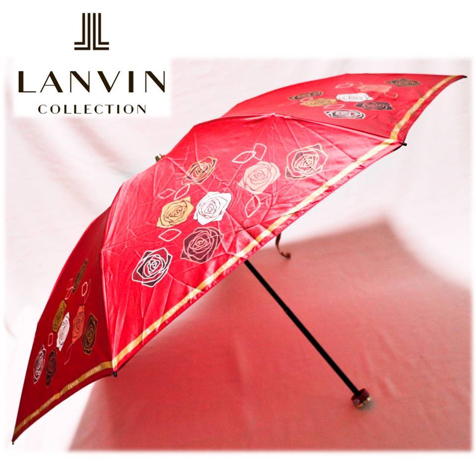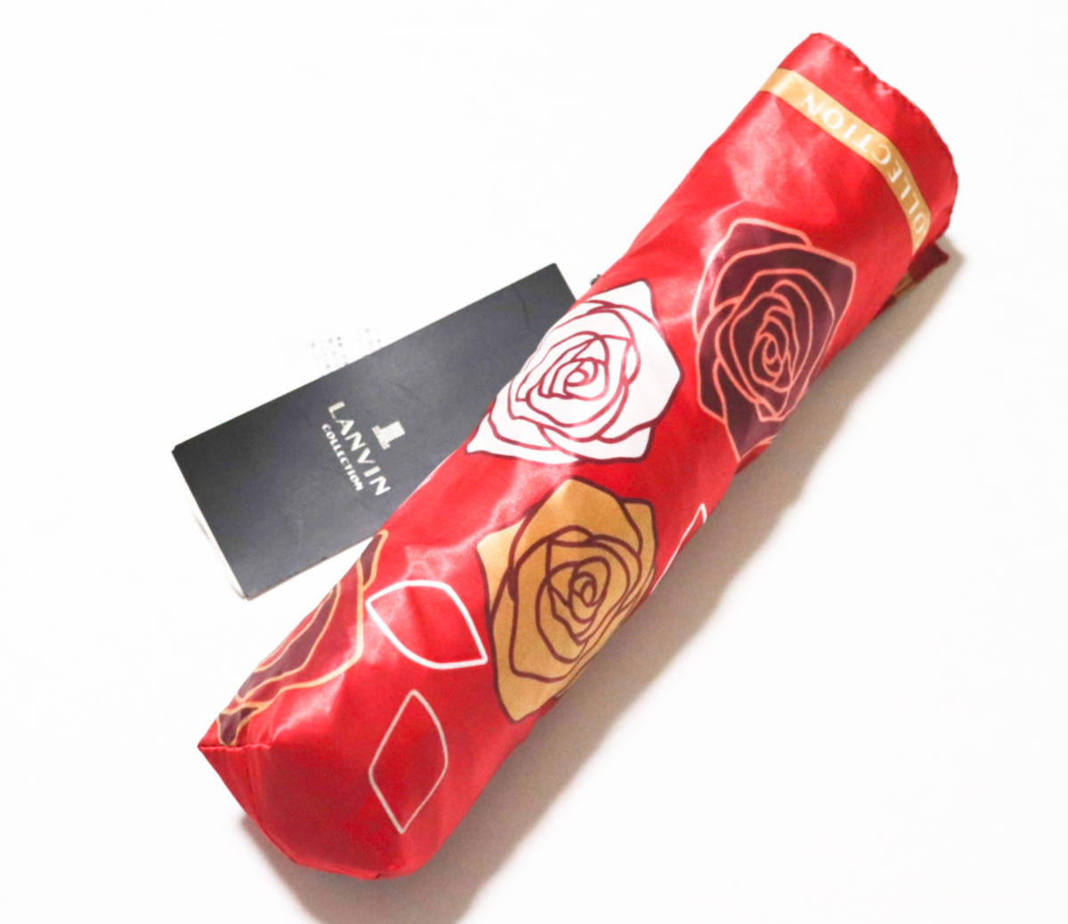 《LANVIN COLLECTION ランバンコレクション》新品訳有 軽量 バラ・花柄 上品デザイン 折りたたみ傘 雨傘 安全ロクロ 赤 A8616 |
