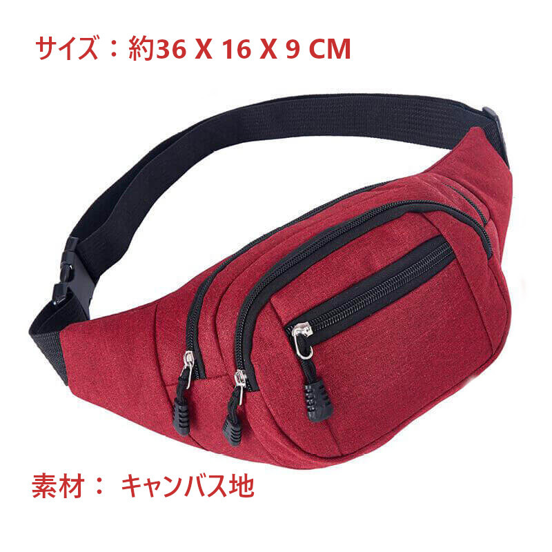 #ボディバッグ ウエストバッグ スリングバッグ☆赤☆キャンバス地 軽量 丈夫 撥水 前掛け