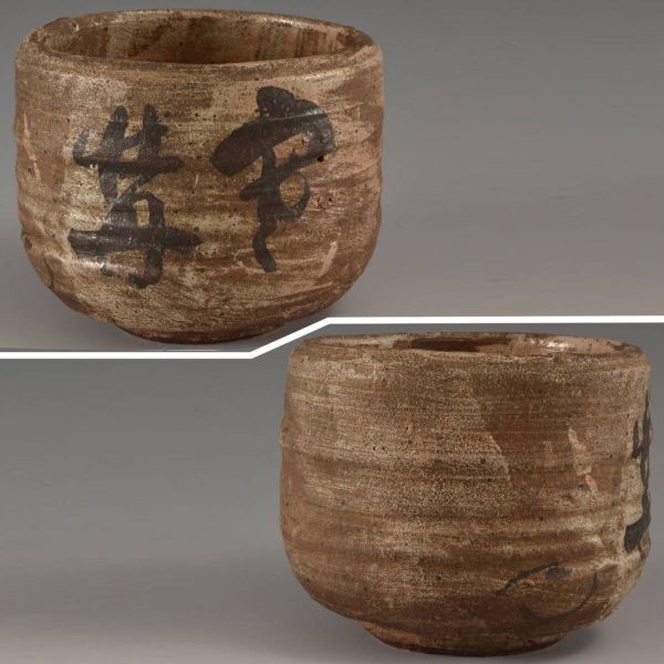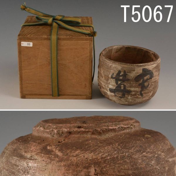 T05067 杉木普斎翁手造茶碗 銘 寒牡丹 玄々斎:真作