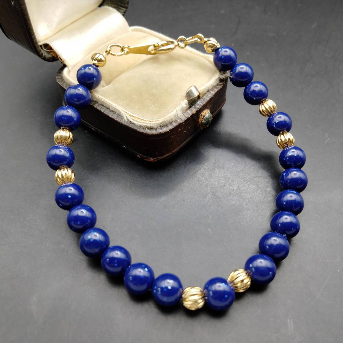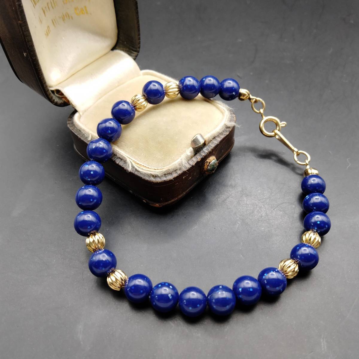 AVON ネイビー ボール ストーン 数珠 ビンテージ ブレスレット バングル 昭和レトロ アクセサリー ジュエリー 輸入 9S-A