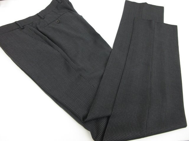 ・スラックス・・・ウエスト実寸約90センチ(3センチ出し、4センチ詰め可能)、総丈約118センチ、股上約26センチ、渡り幅約33センチ、股下約93センチ、裾幅(股下80センチ付近で)約19.5センチ(裾上げはされていません。ご購入後お客様自身で裾上げをして頂く必要がございます。)