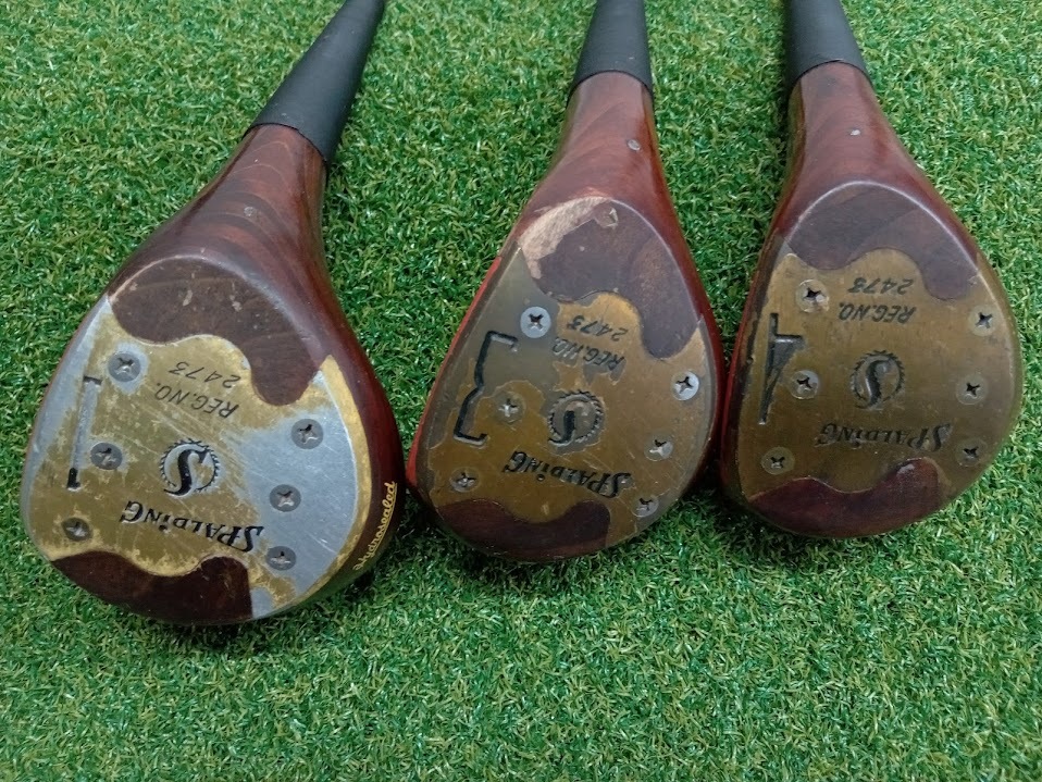 ▽ SPALDING フェアウェイウッド 3本 / スポルディング 1W 3W 4W まとめて パーシモンウッド? スチールシャフト ミズノ MIZUNO