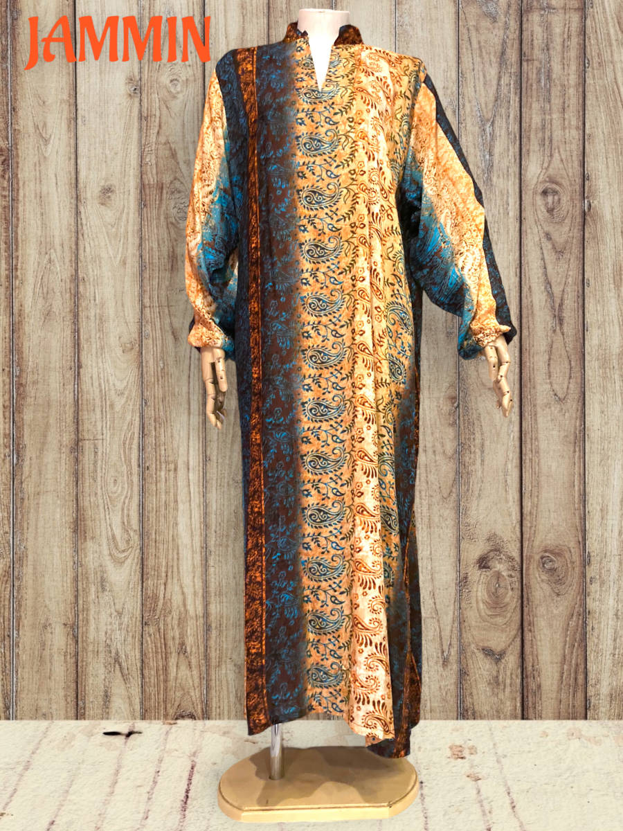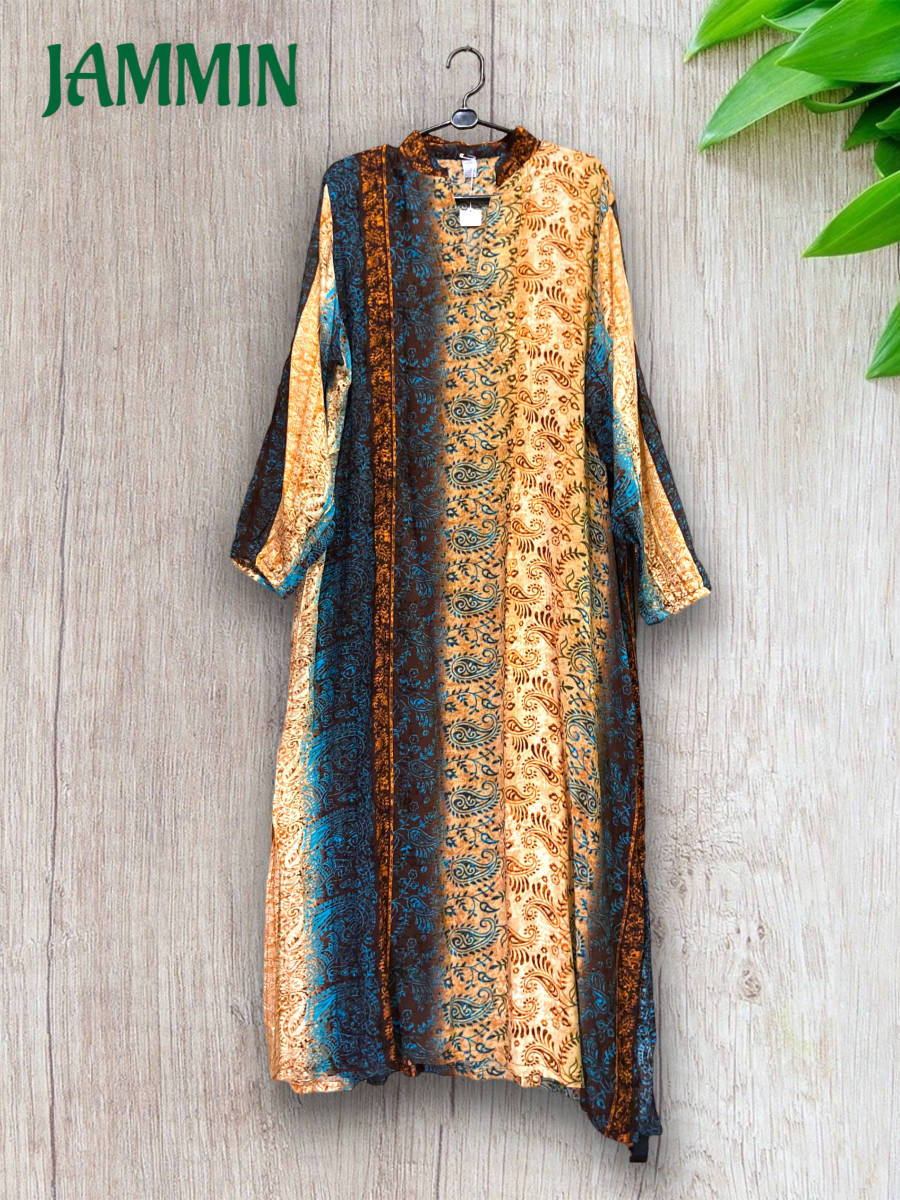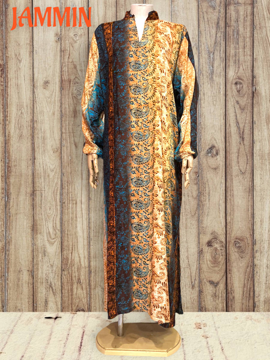 アジアンなペーズリー植物柄のロングワンピです。