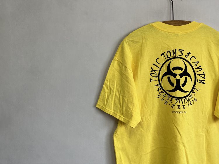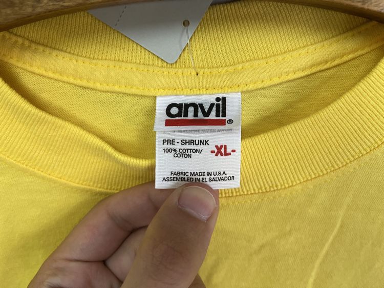 グッドプリント90s~ビンテージANVILアンビルボディ半袖バックプリントTシャツXL黄色100綿アメカジストリートビッグサイズnr24043