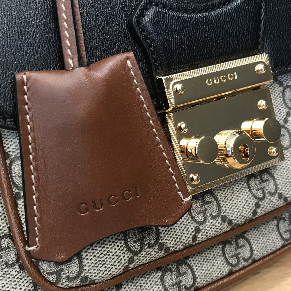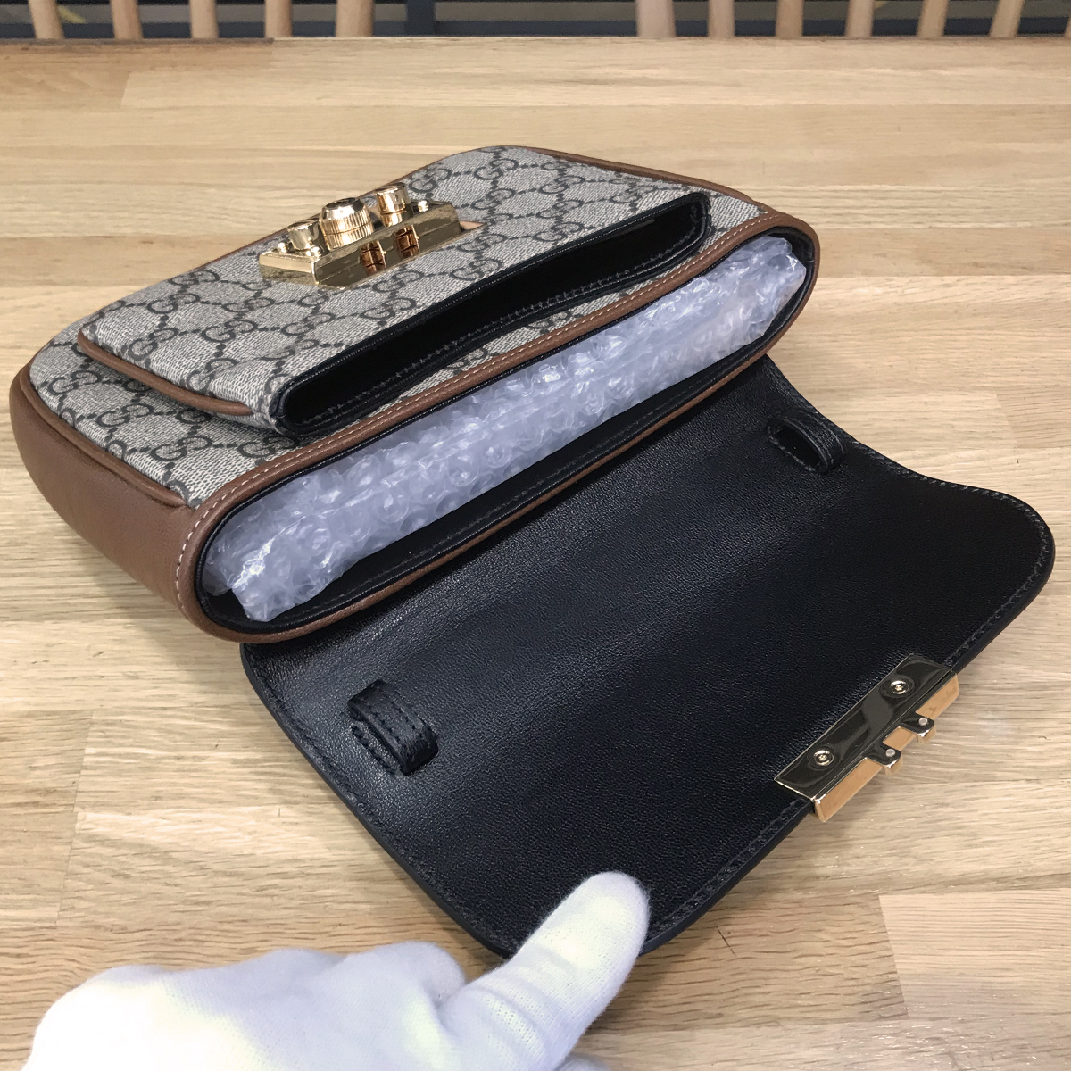 【新品同様】グッチ GGスプリーム パドロック ミニ 2WAYショルダーバッグ ブラウン ブラック 658487 ハンドルバッグ 11167