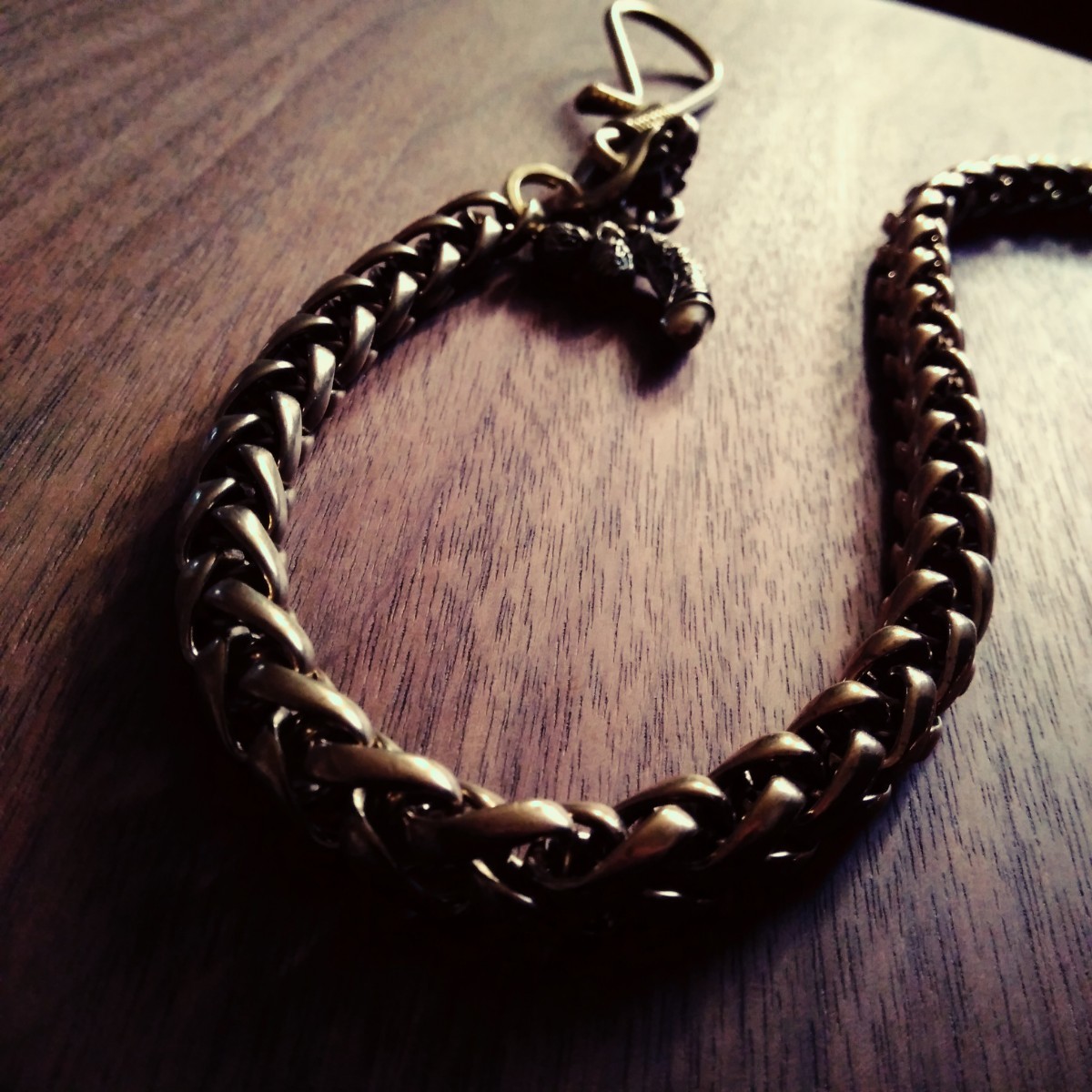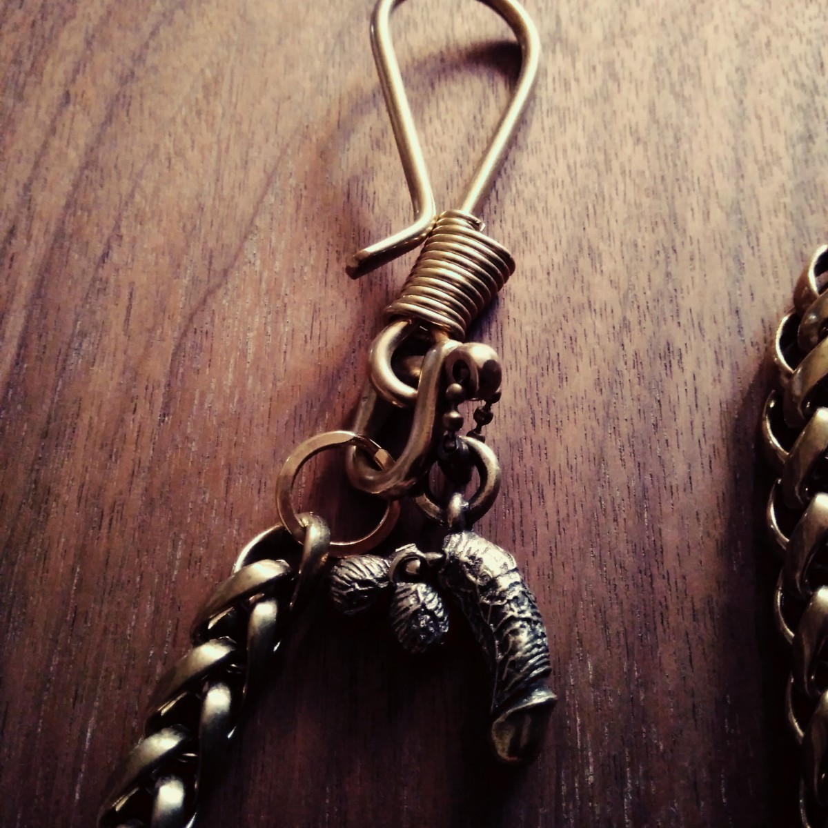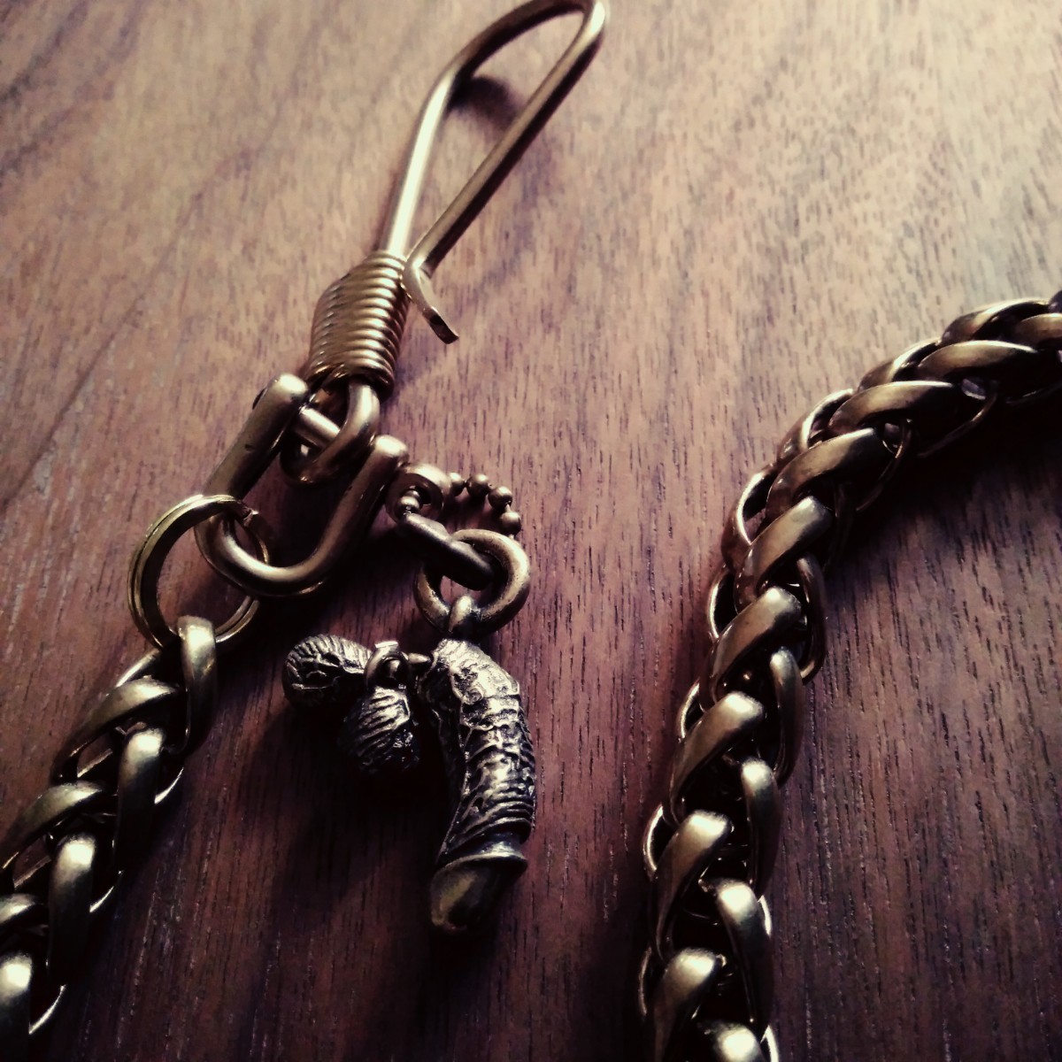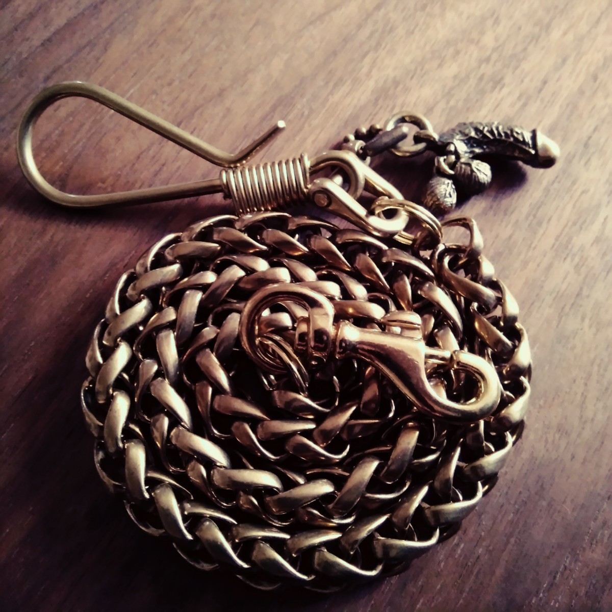 真鍮編込みウォレットチェーンなので経年変色エイジングをお楽しみ頂けますよ!