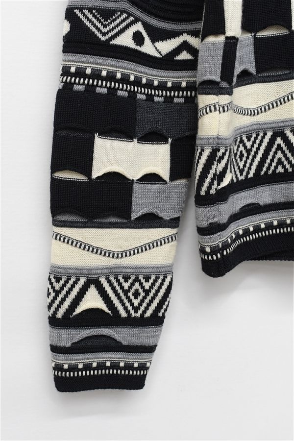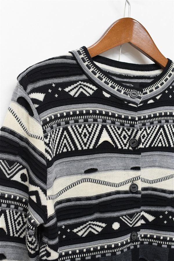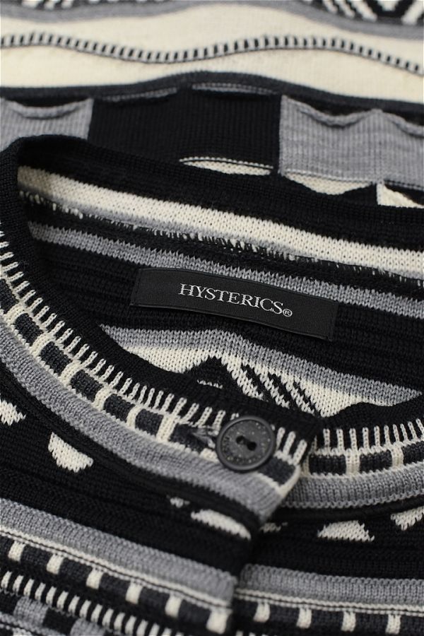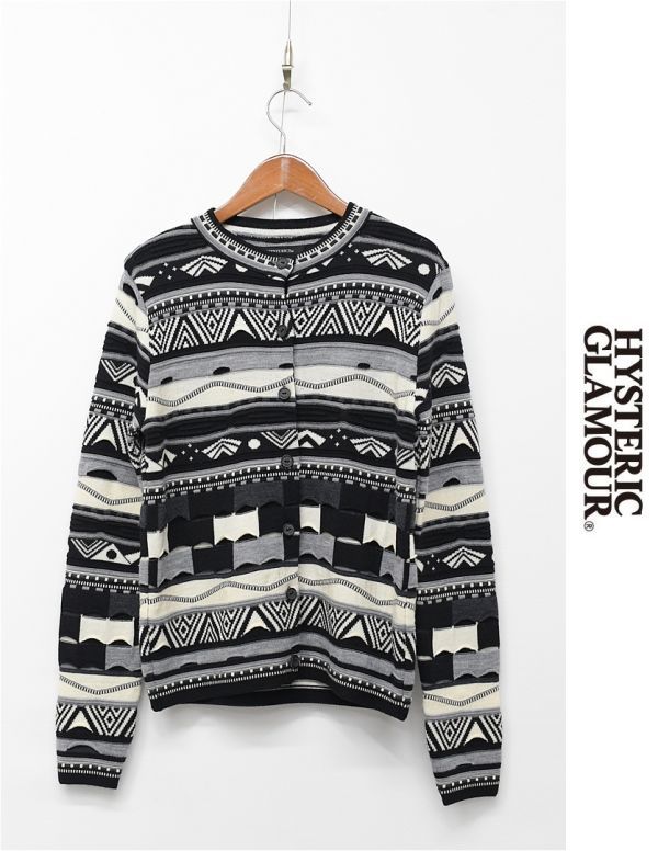 HGA-U205/美品 HYSTERICS HYSTERIC GLAMOUR 3Dニットカーディガン クレイジーパターン 総柄 ストレッチ ウール M~L 黒/セーター