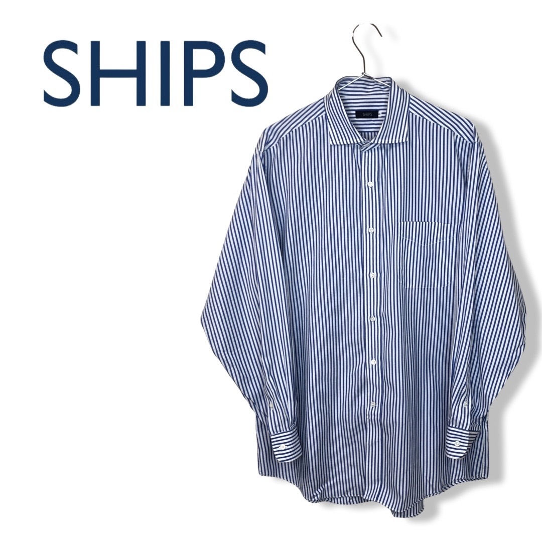 ★シップス SHIPS★ピンストライプ柄 長袖 シャツ ワイシャツ カジュアルシャツ ブルー×ホワイト size 16 管:D:07