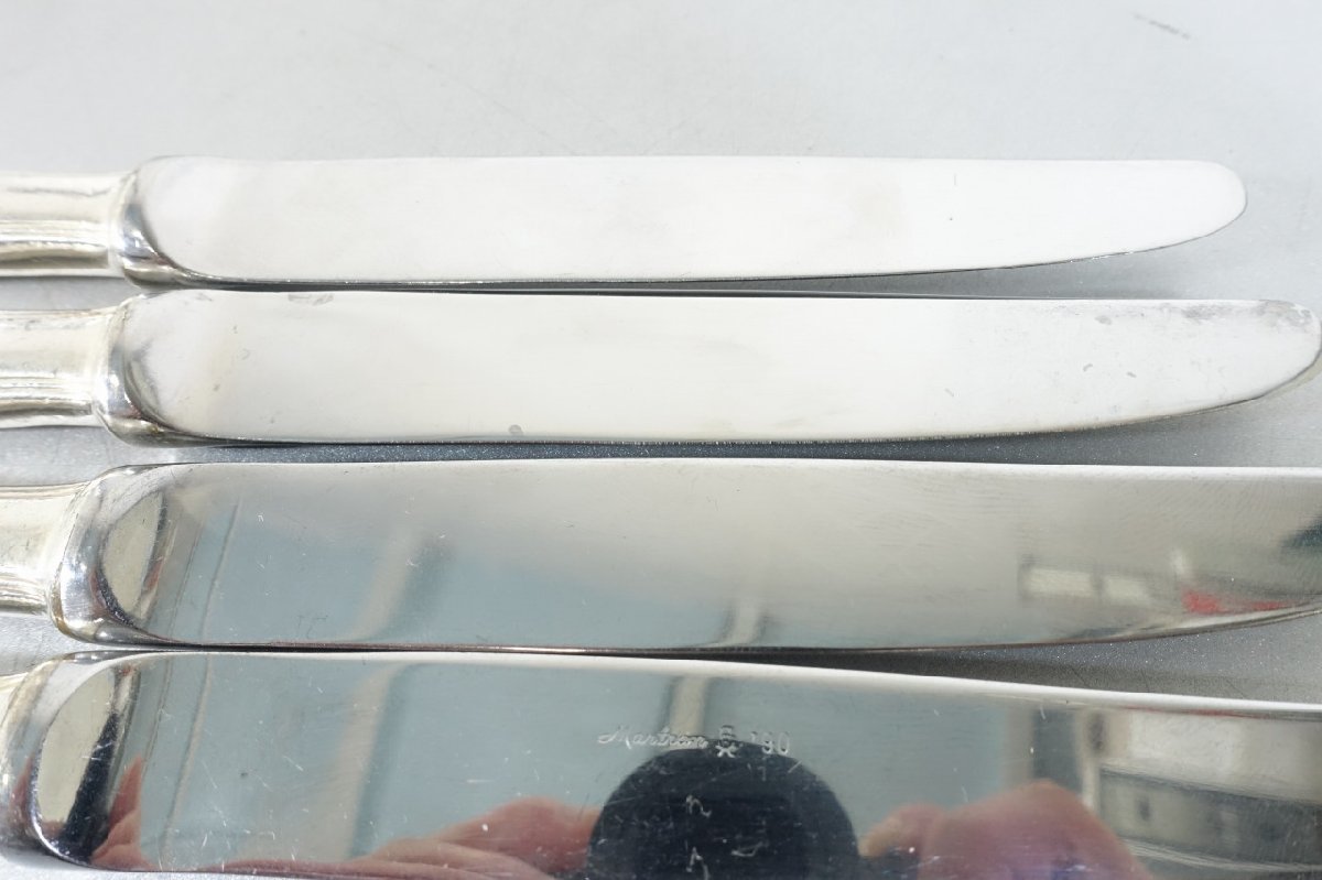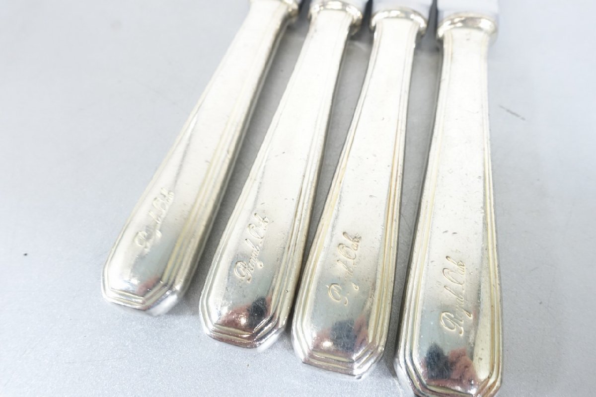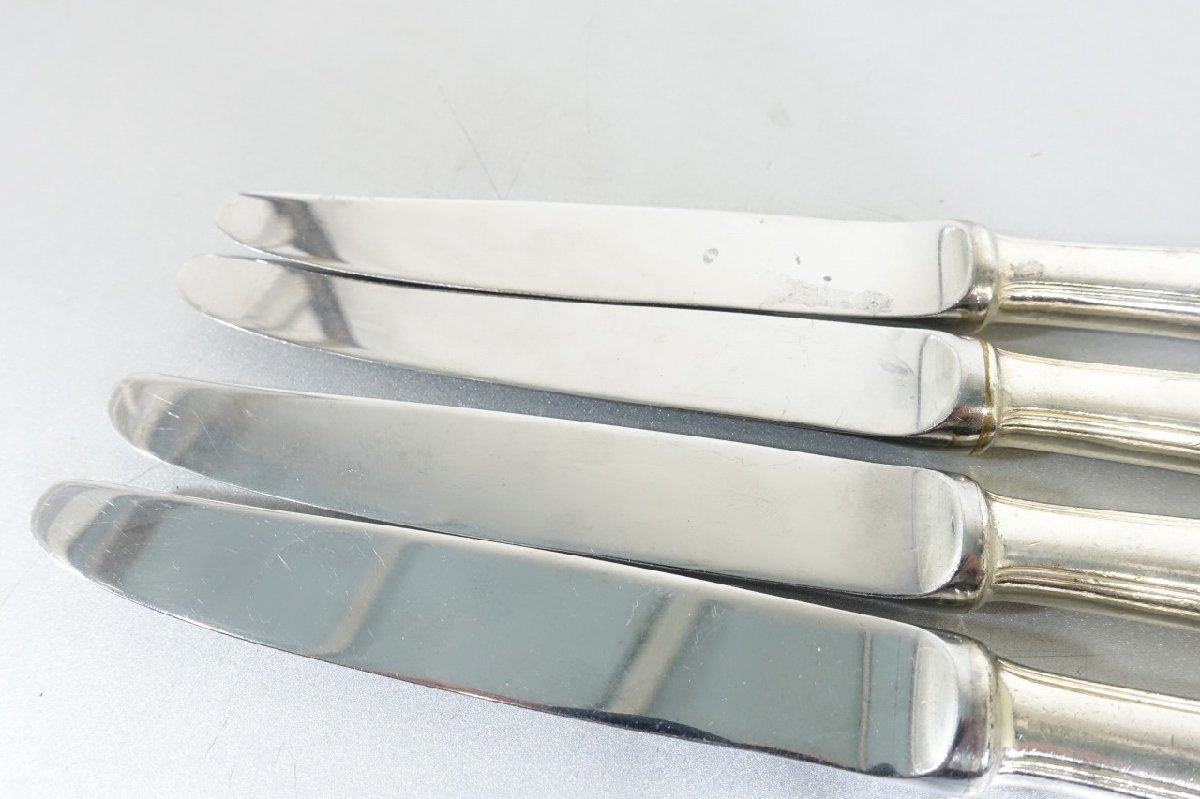 商品詳細 | ・全体的に擦り傷、打痕、刃こぼれなどがあります。 ・4本セットでの販売となります ・メッキの変色が見られるものがあります。 ・刃部分に細かな変色あり ・柄の部分にN.S.刻印あり(1本のみ) ・刃部分にマーシャンの刻印あり(1本のみ) ・刃がステンレスの2ピース構造です。 |