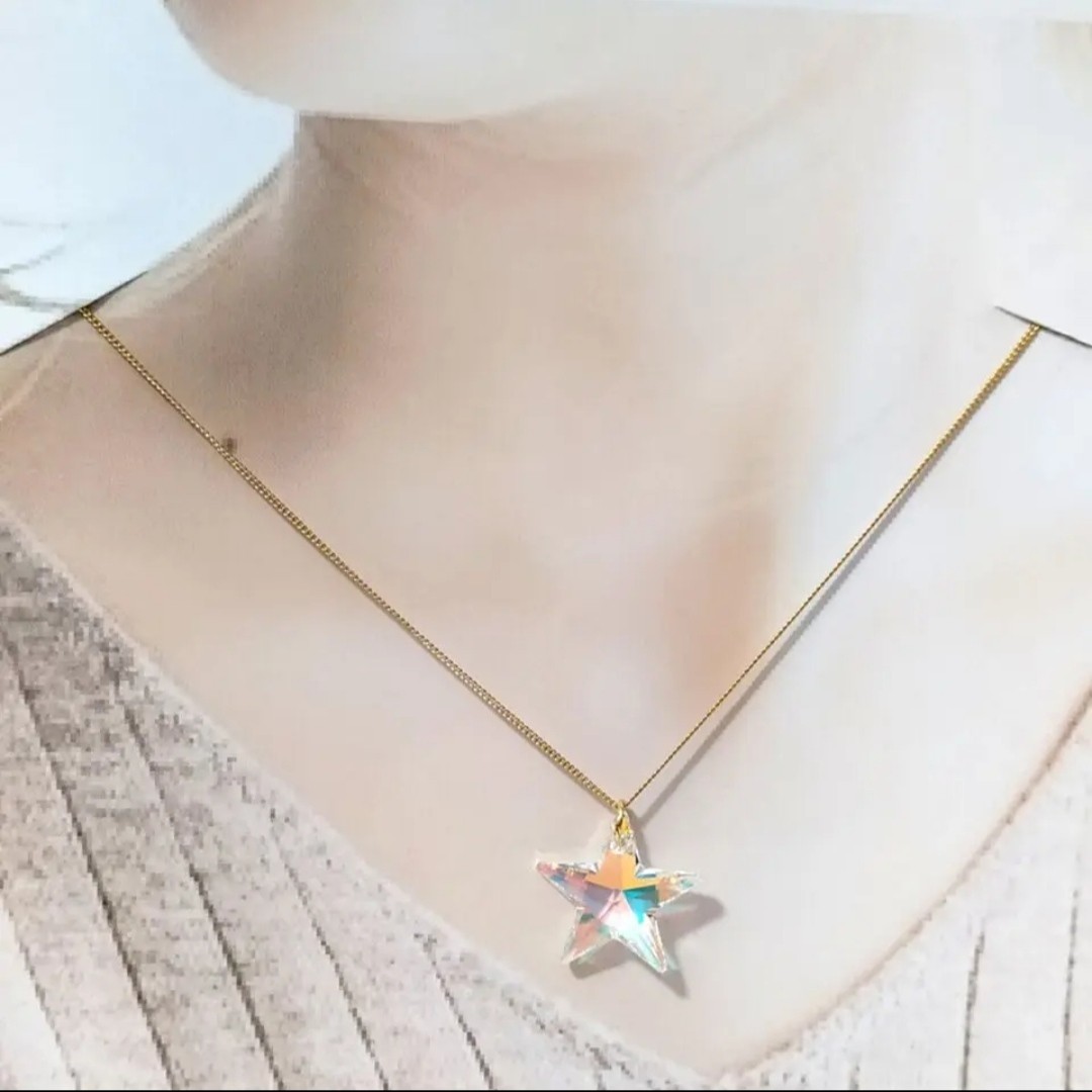 星の形のスワロフスキー・クリスタルをネックレスにしました。